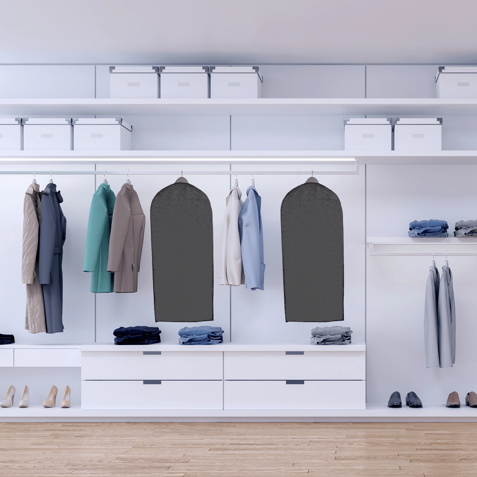 Beschermt kleding tegen stof en lichte vervuiling bij dagelijks gebruik en seizoensopslag. Ook perfect voor reizen – houdt kleding netjes en klaar om te dragen.