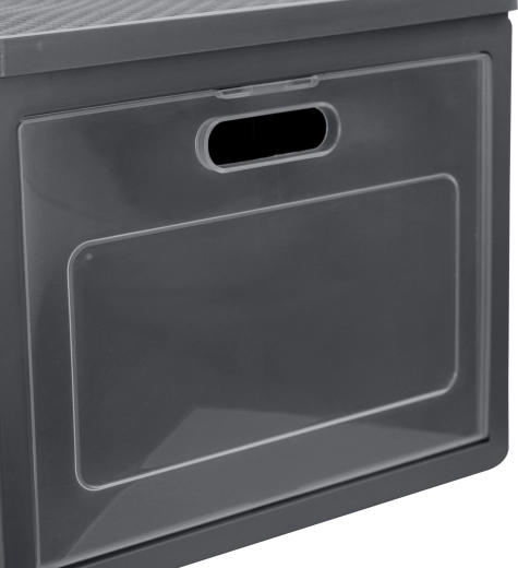 Deur(tjes) aan de voorkant maken het mogelijk om opgeborgen spullen te pakken zonder te herschikken of de box op te tillen – ideaal voor planken en kasten.