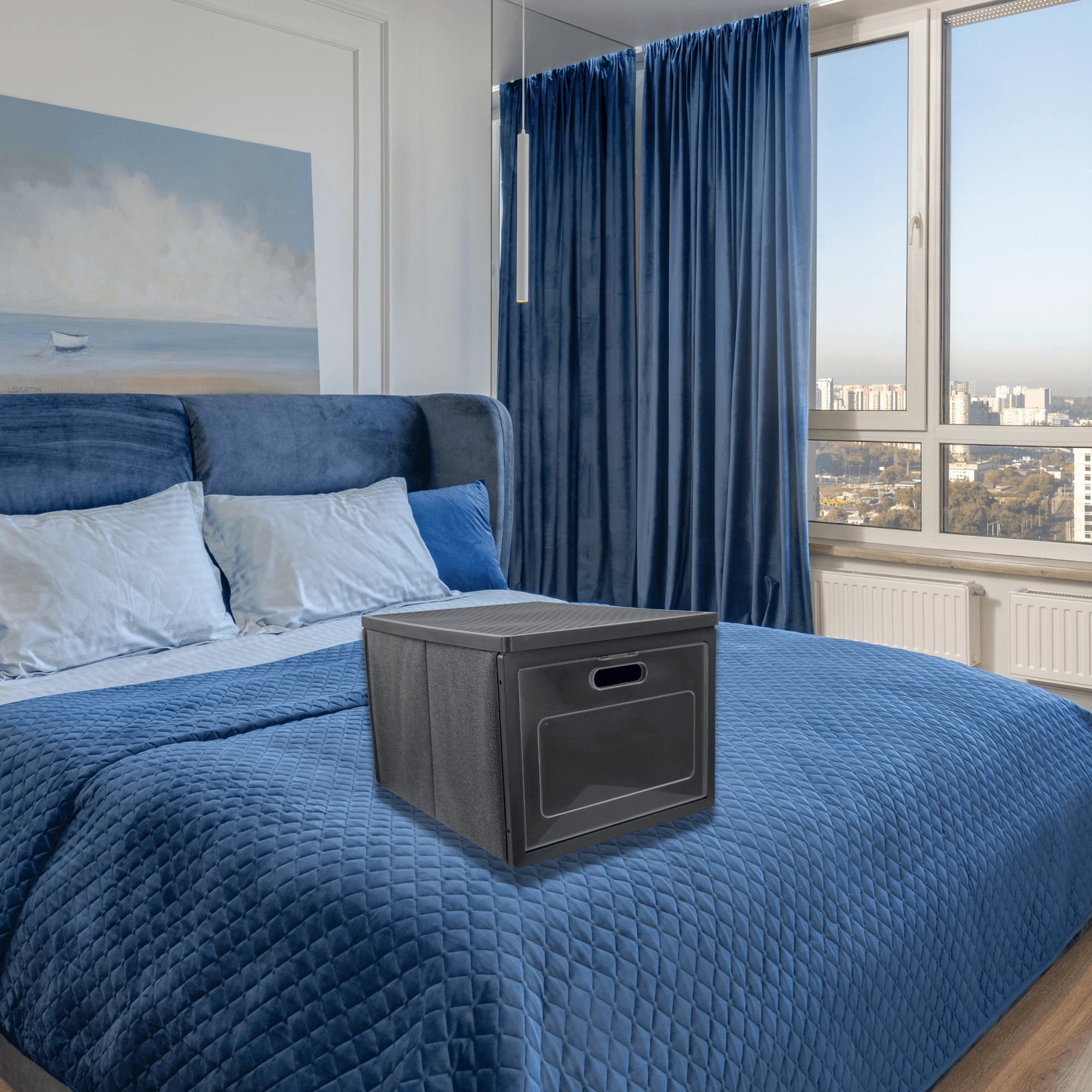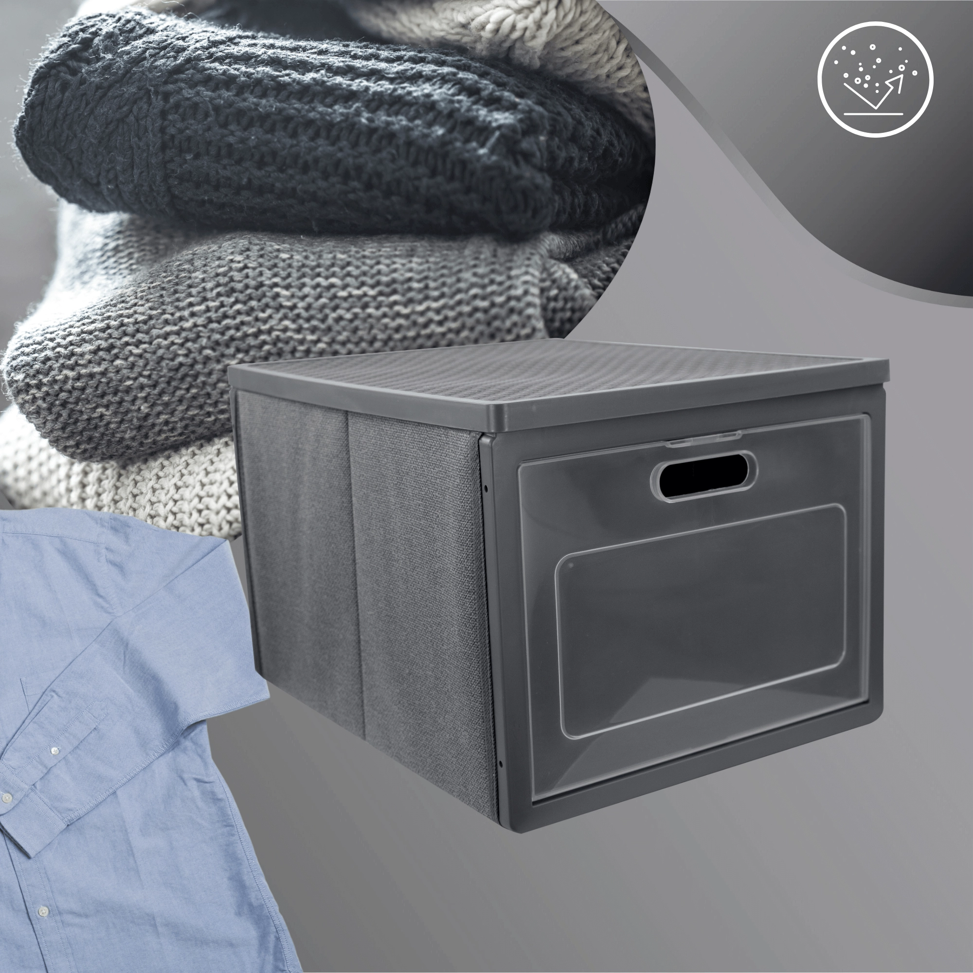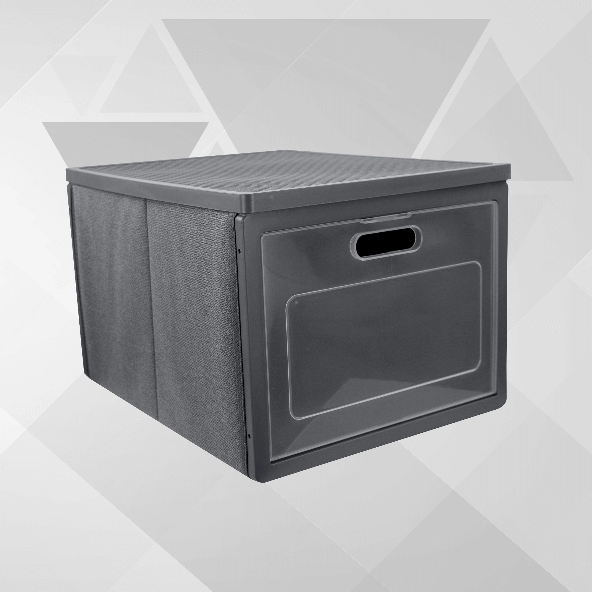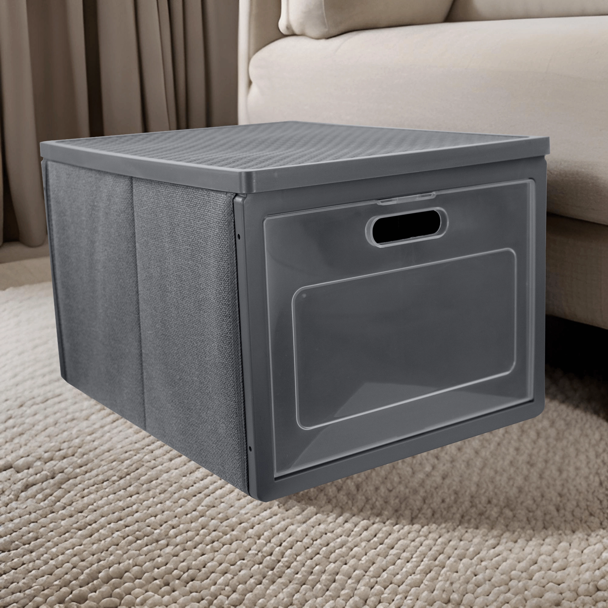 De box is gemaakt van non-woven textiel: licht, slijtvast en eenvoudig te reinigen. Het opvouwbare design bespaart ruimte wanneer je hem niet nodig hebt. Zijhandgrepen maken het hanteren makkelijker tijdens schoonmaken, verhuizen en dagelijks gebruik.