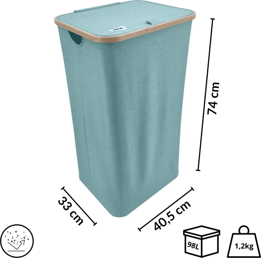 Dankzij het volume van 98 l biedt hij ruimte aan was voor het hele gezin. Zijhandgrepen zorgen voor comfortabel dragen naar de wasruimte, terwijl de opvouwbare constructie je in staat stelt de mand snel in te klappen en op te bergen wanneer je hem niet gebruikt.