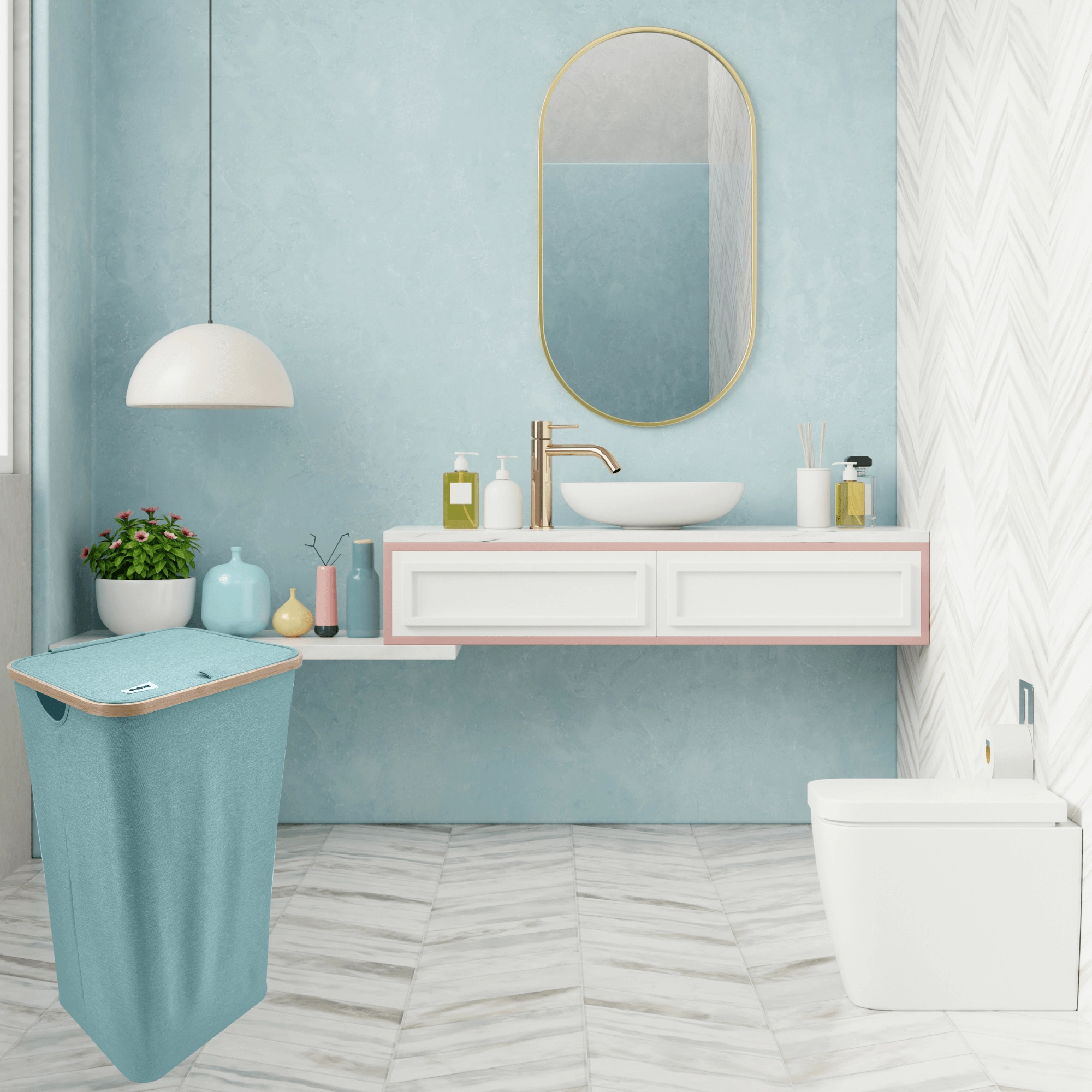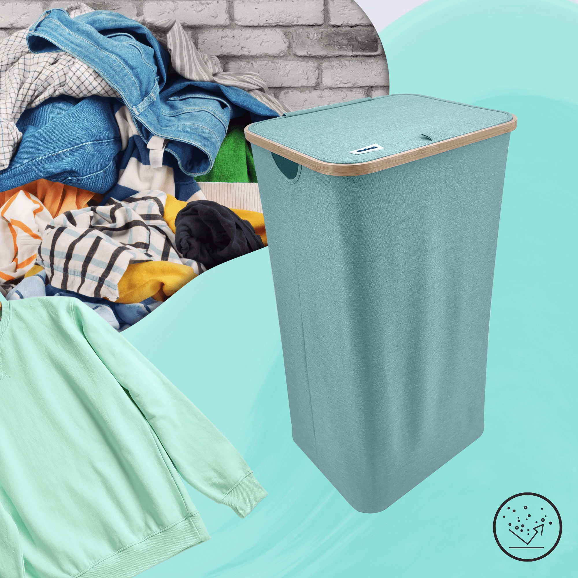 De decoratieve bamboeafwerking maakt het interieur gezelliger, terwijl het deksel de inhoud discreet verbergt en helpt de verspreiding van geurtjes te beperken.