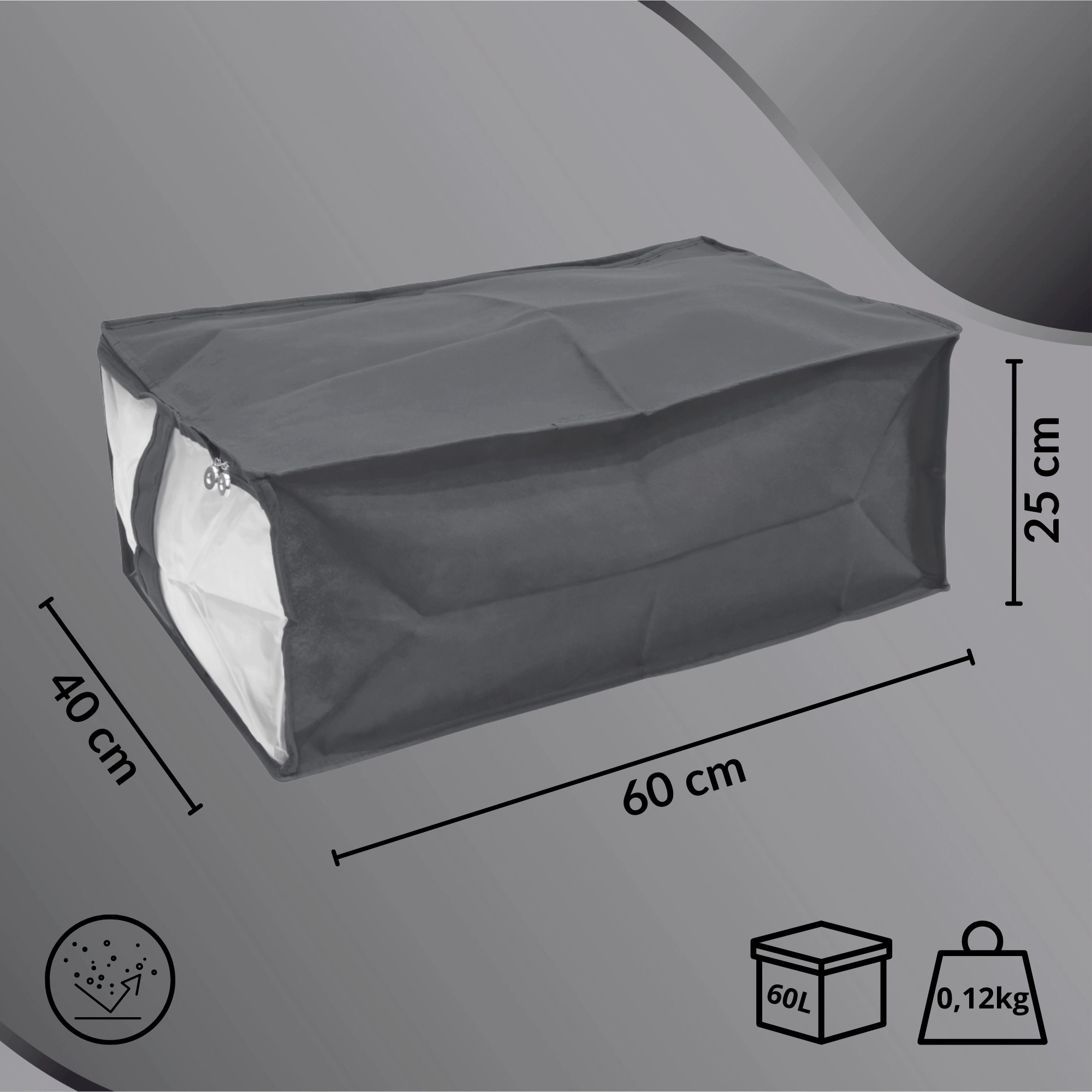 Houd perfecte orde in je kast met deze grijze textielen organizer met afmetingen 40 × 60 × 25 cm. Beschermt kleding en beddengoed tegen stof, heeft een praktisch transparant venster voor snelle oriëntatie en een rits rondom voor gemakkelijke toegang. Licht, opvouwbaar en ideaal voor in de kast of onder het bed. Bescherming tegen stof, transparant venster, rits rondom, opvouwbaar ontwerp, universele afmeting.