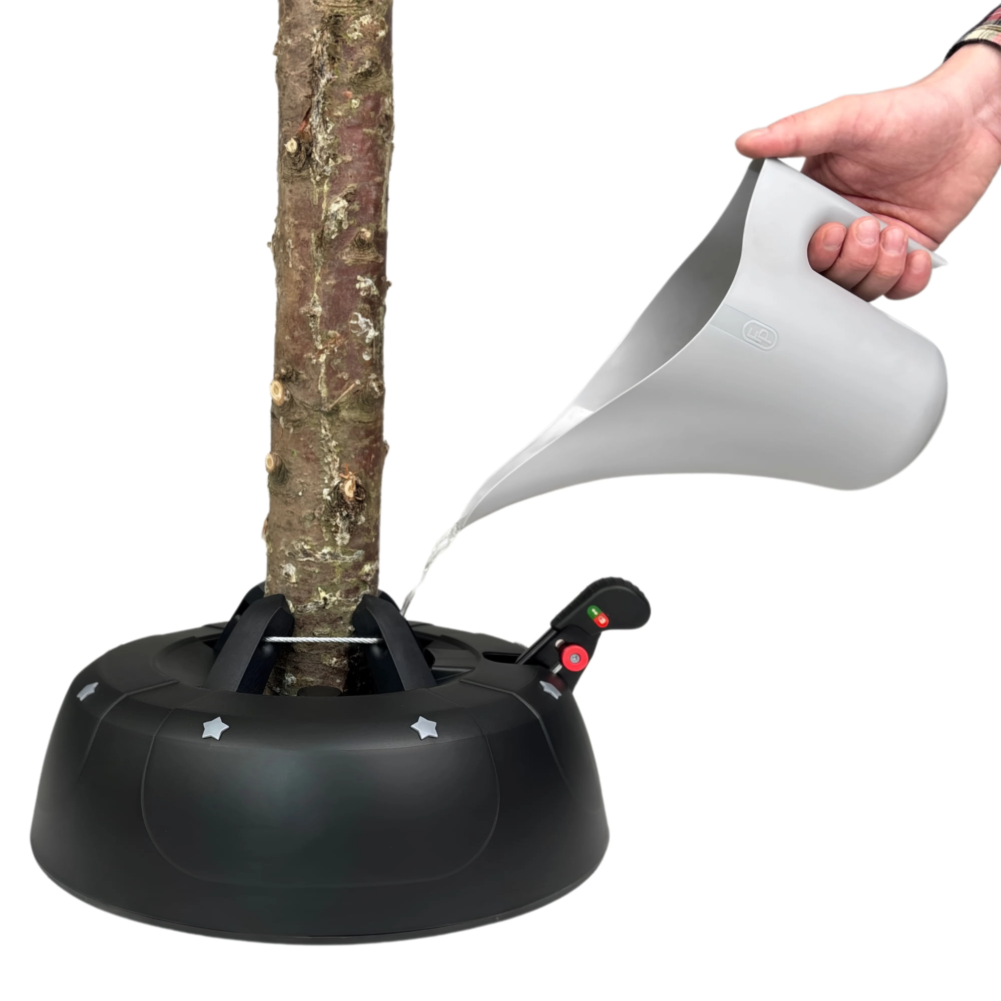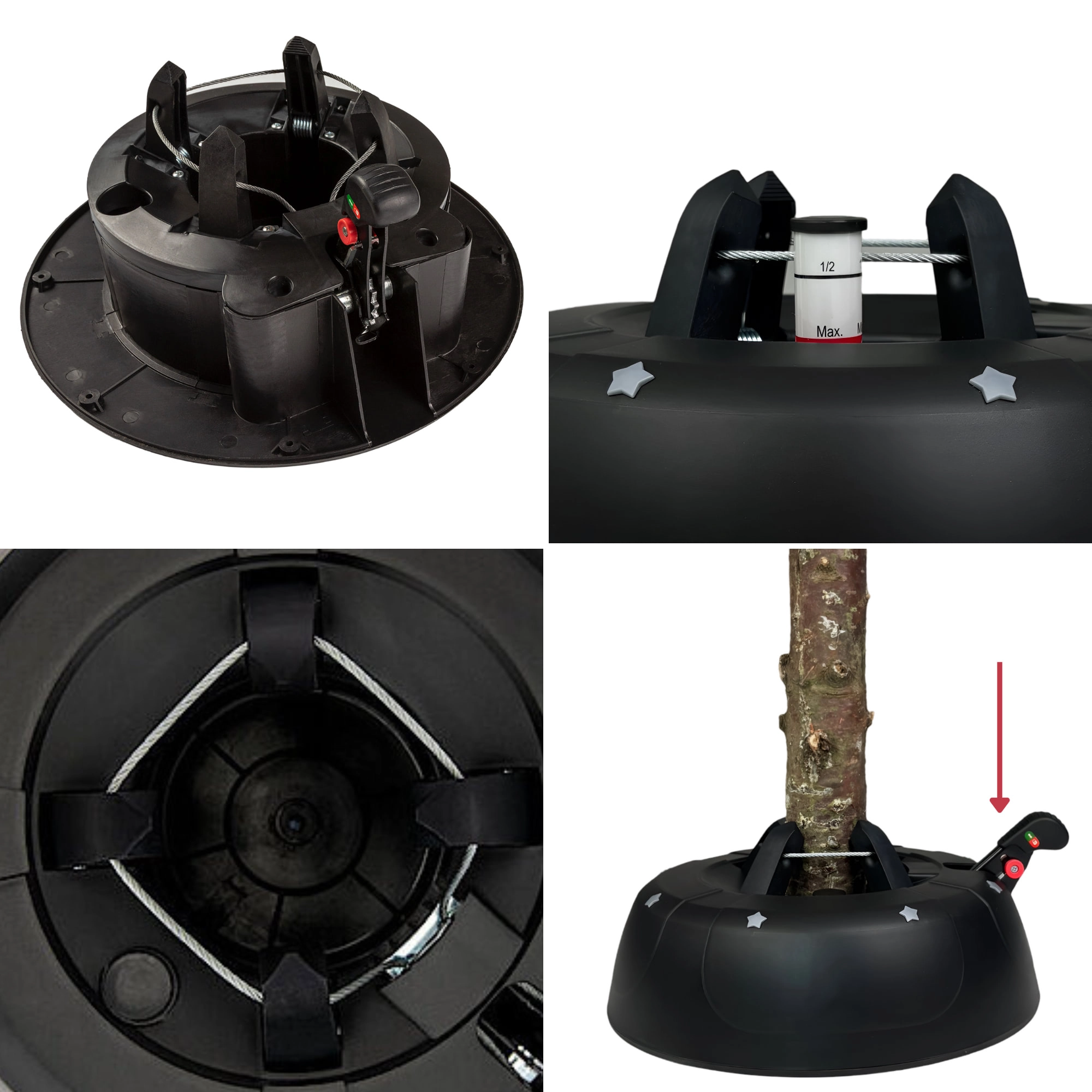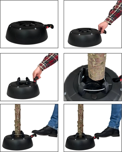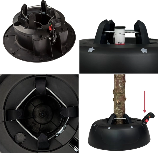 Geniet van zorgeloze feestdagen met een standaard die overal aan denkt – van snel vastzetten van de boom tot het langer vers houden ervan. Het gepatenteerde systeem van vier automatische stalen haken klemt de stam in enkele seconden stevig vast, terwijl de brede en zware basis stabiliteit biedt gedurende de hele kerstperiode.