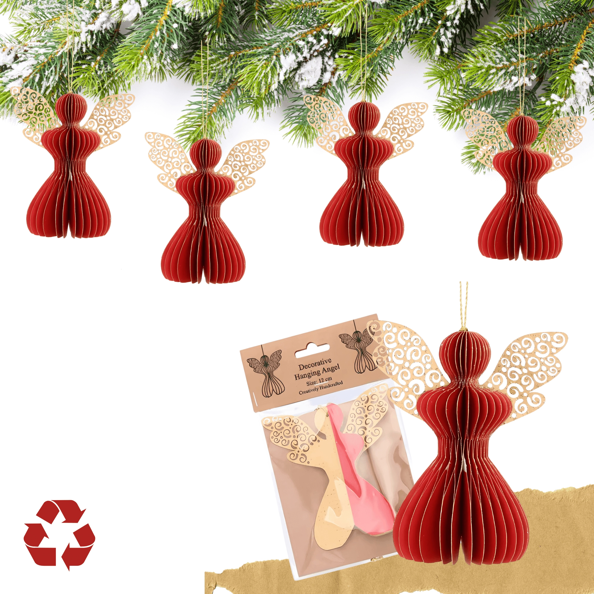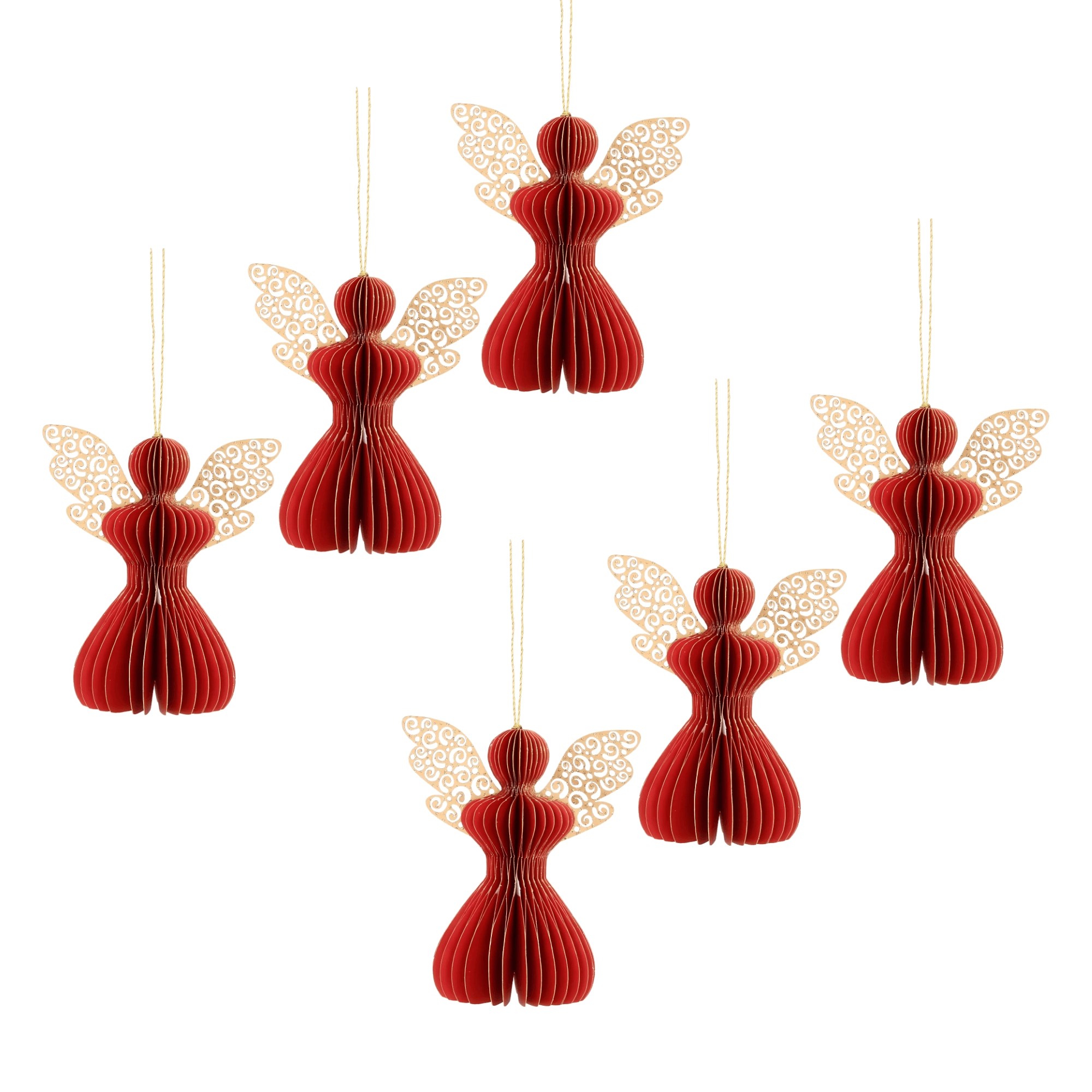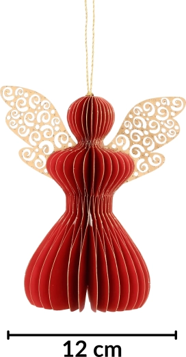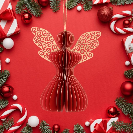 De rode papieren engel is een veelzijdige kerstdecoratie die past in zowel klassieke als moderne interieurs. Dankzij het lichte honingraat (vouw)design is hij eenvoudig op te hangen en zorgt hij voor een opvallend 3D-effect. Gebruik hem in de boom, in een krans, voor het raam of als subtiel accent op de feestelijke tafel.