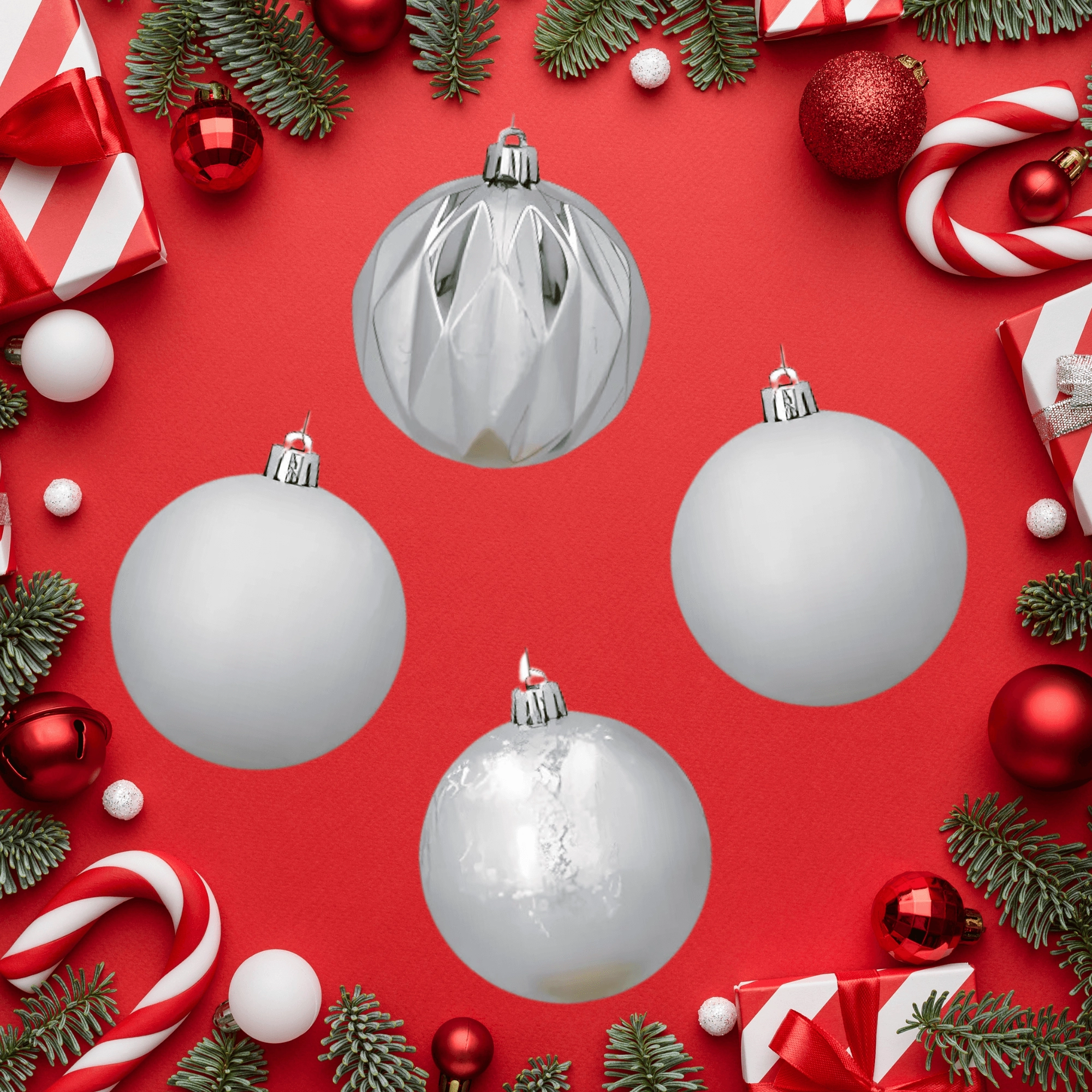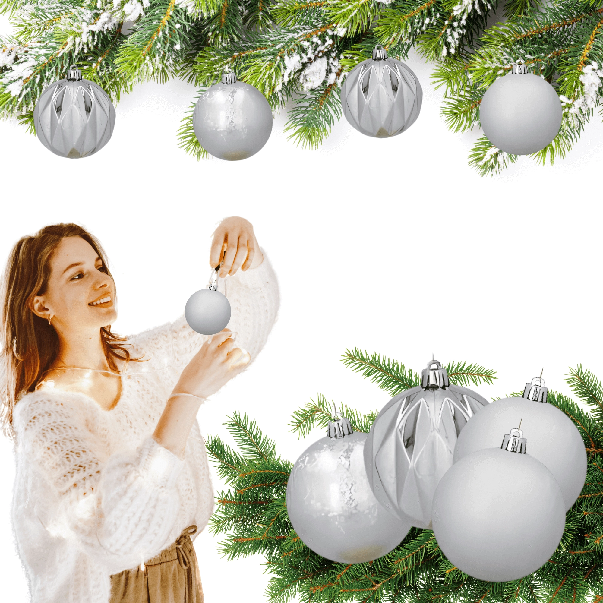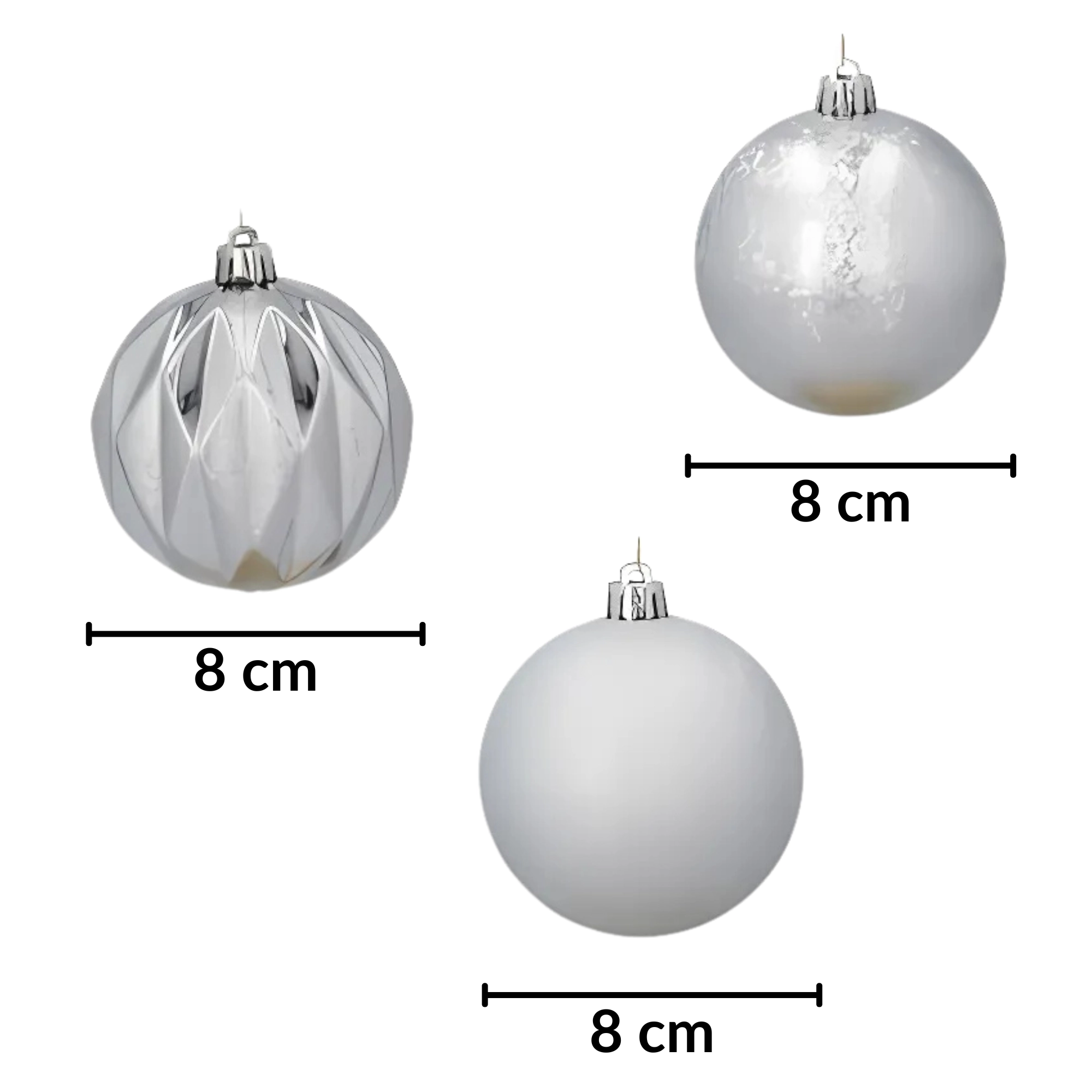Deze zilveren kerstballen zijn ontworpen om prachtig op de boom uit te komen. Dankzij de combinatie van matte, glanzende en gestructureerde oppervlakken bieden ze visuele variatie en een subtiele metallic glans. Ze zijn niet alleen geschikt voor de kerstboom, maar ook voor lantaarns, kransen of als stijlvolle tafeldecoratie.