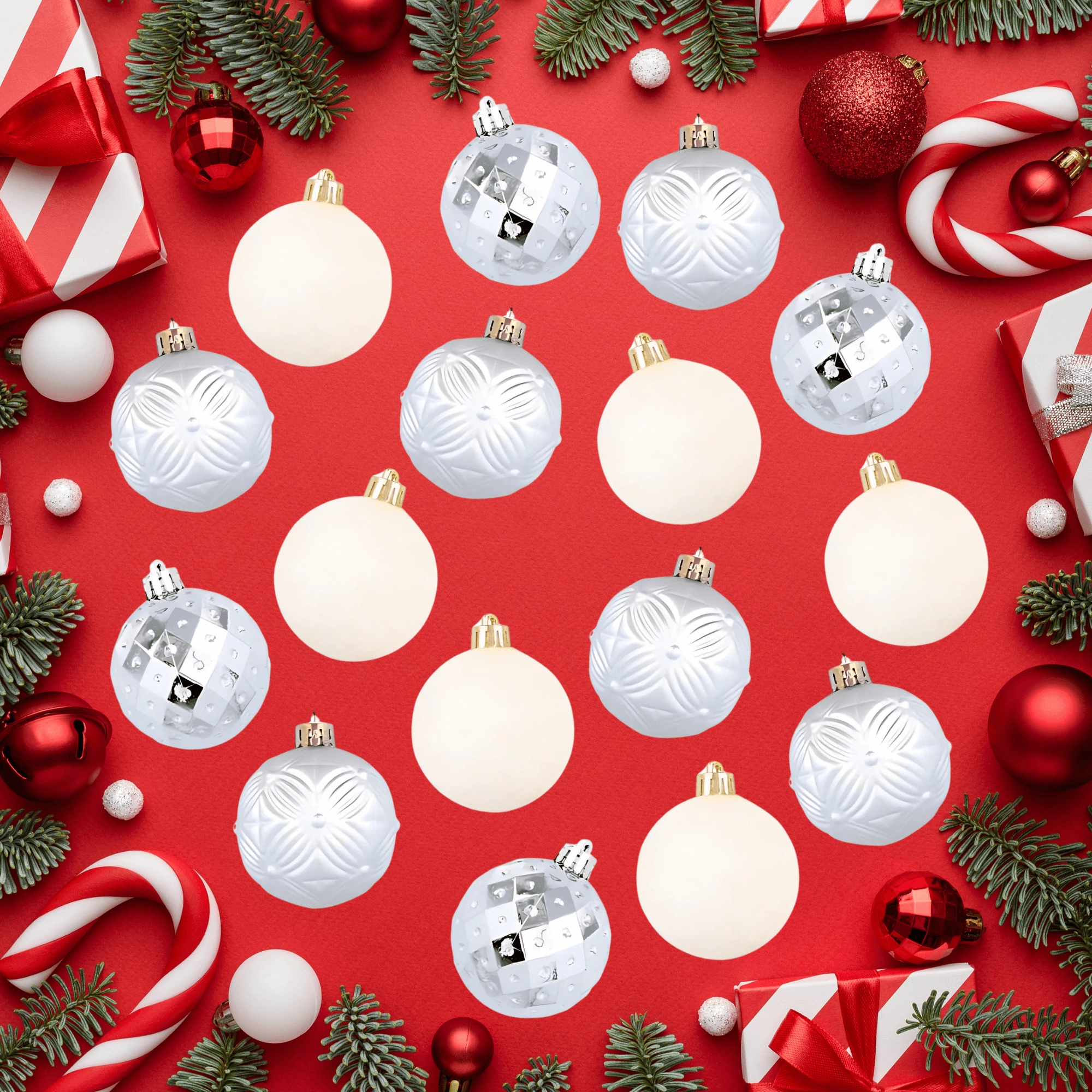 Creëer een stijlvolle kerstboom met deze set van 16 zilveren ballen met een diameter van 6 cm. Ze zijn gemaakt van onbreekbare kunststof, licht en veilig, met zowel een glanzende als matte afwerking. Perfect voor traditionele en moderne decoraties en dankzij de meegeleverde koordjes om op te hangen is de installatie snel en eenvoudig.