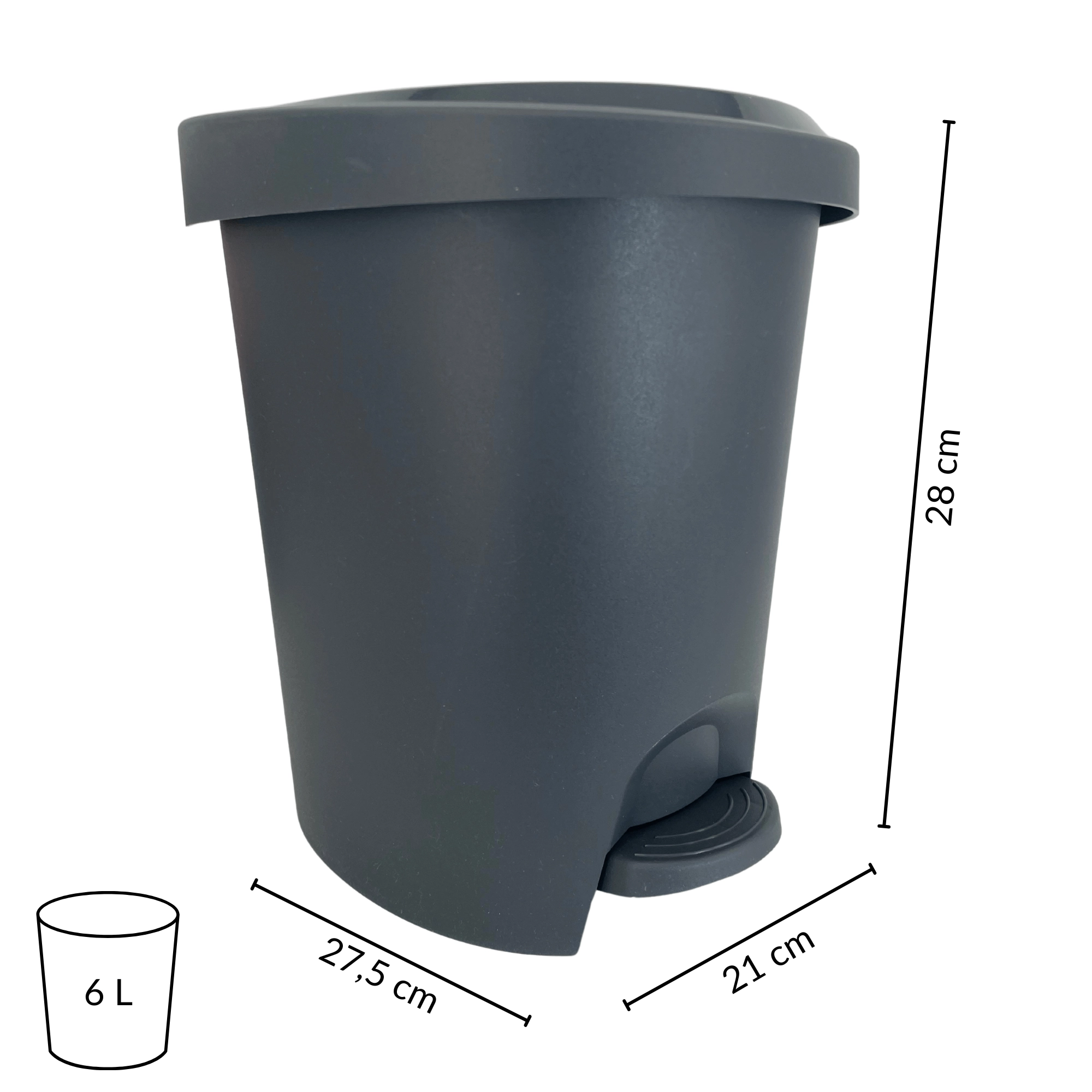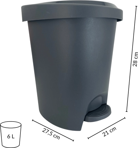 Elegante en praktische pedaalemmer van 6 l in grafietkleur, ideaal voor in de badkamer, keuken en op kantoor. Dankzij het handsfree openen met pedaal is hij zeer hygiënisch, heeft hij een mat oppervlak voor een moderne look en compacte afmetingen voor eenvoudige plaatsing, zelfs in kleine ruimtes.