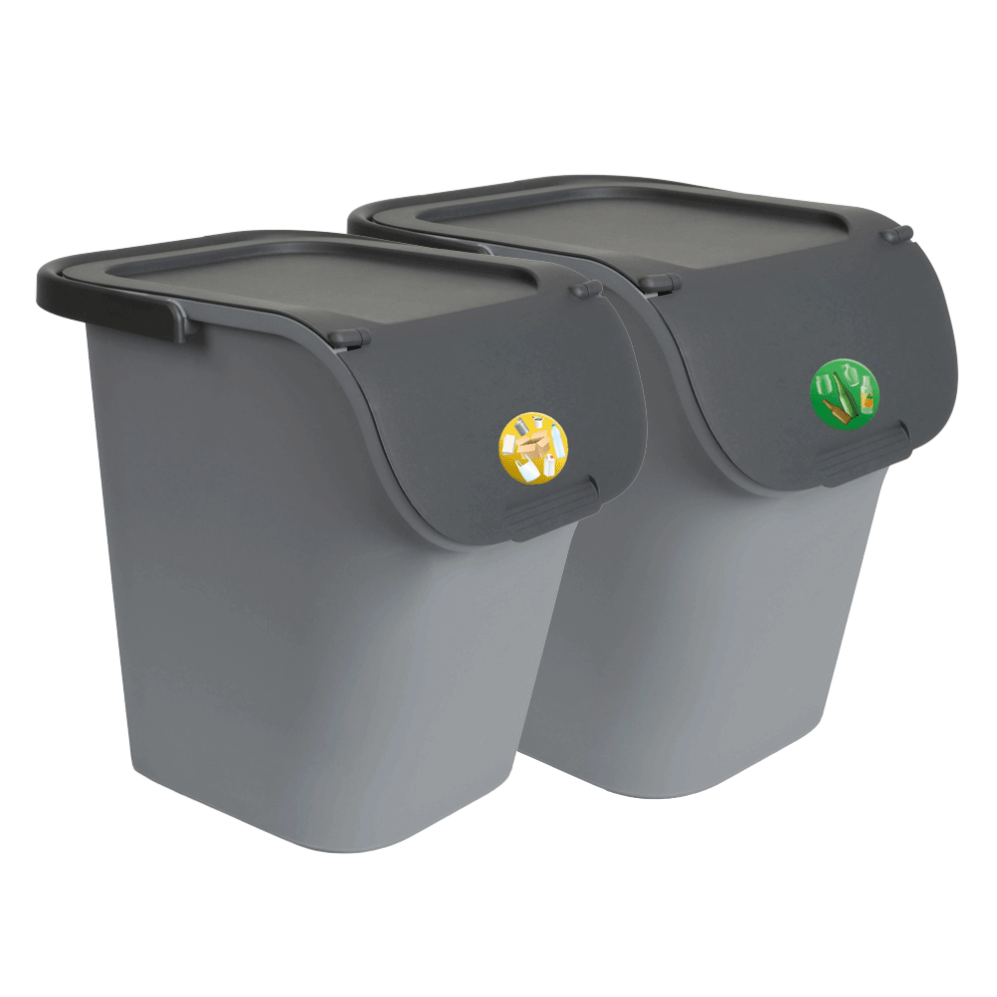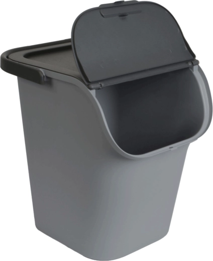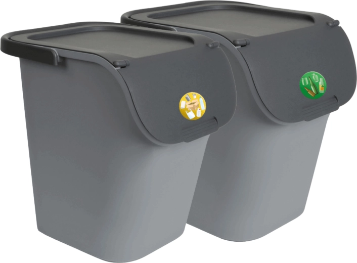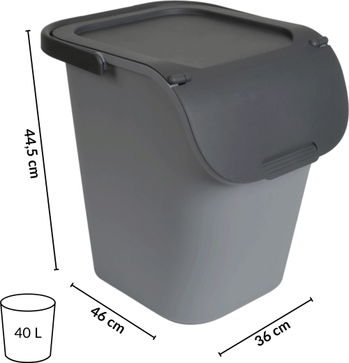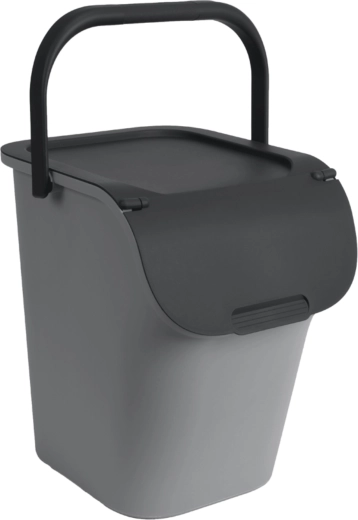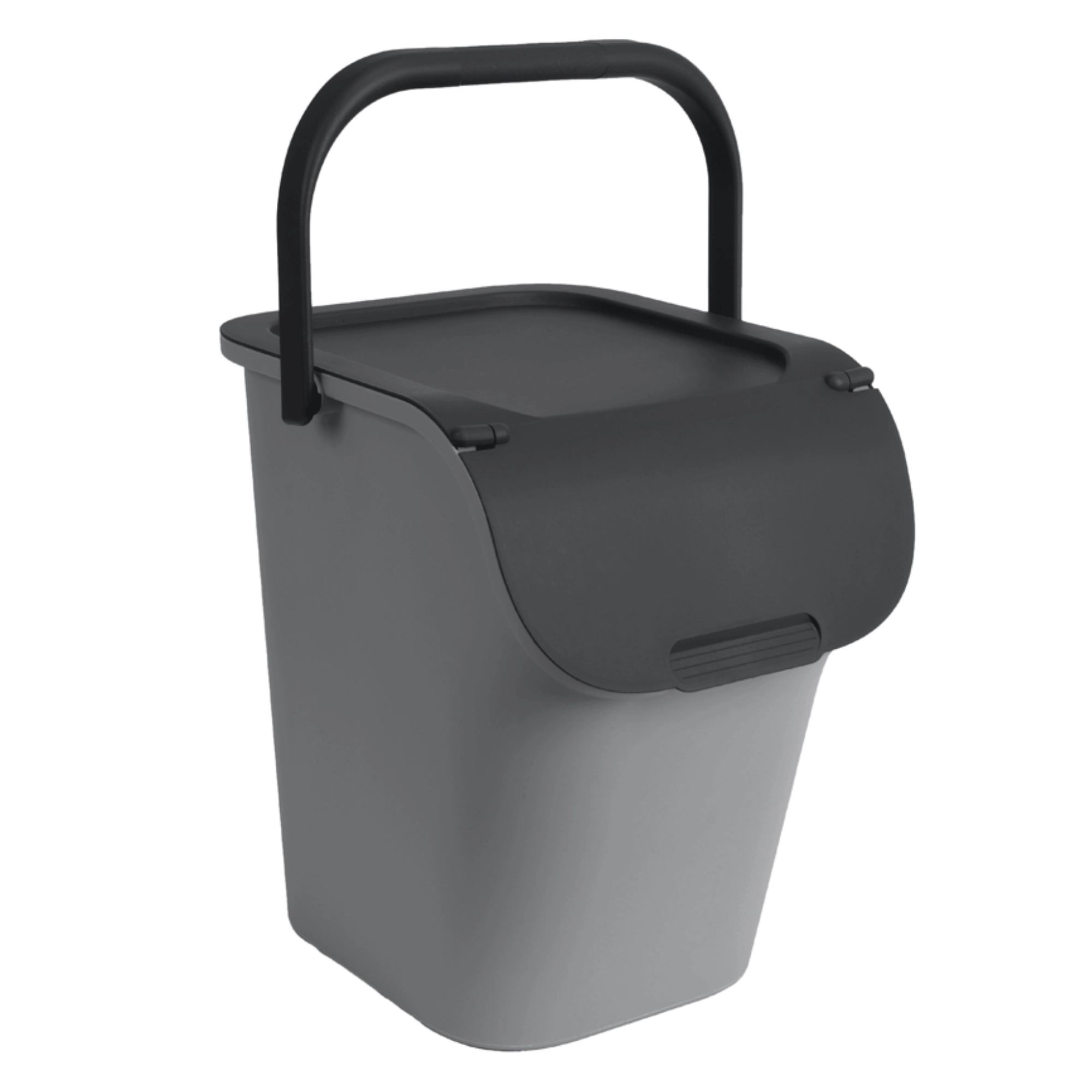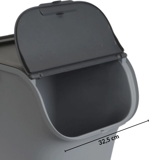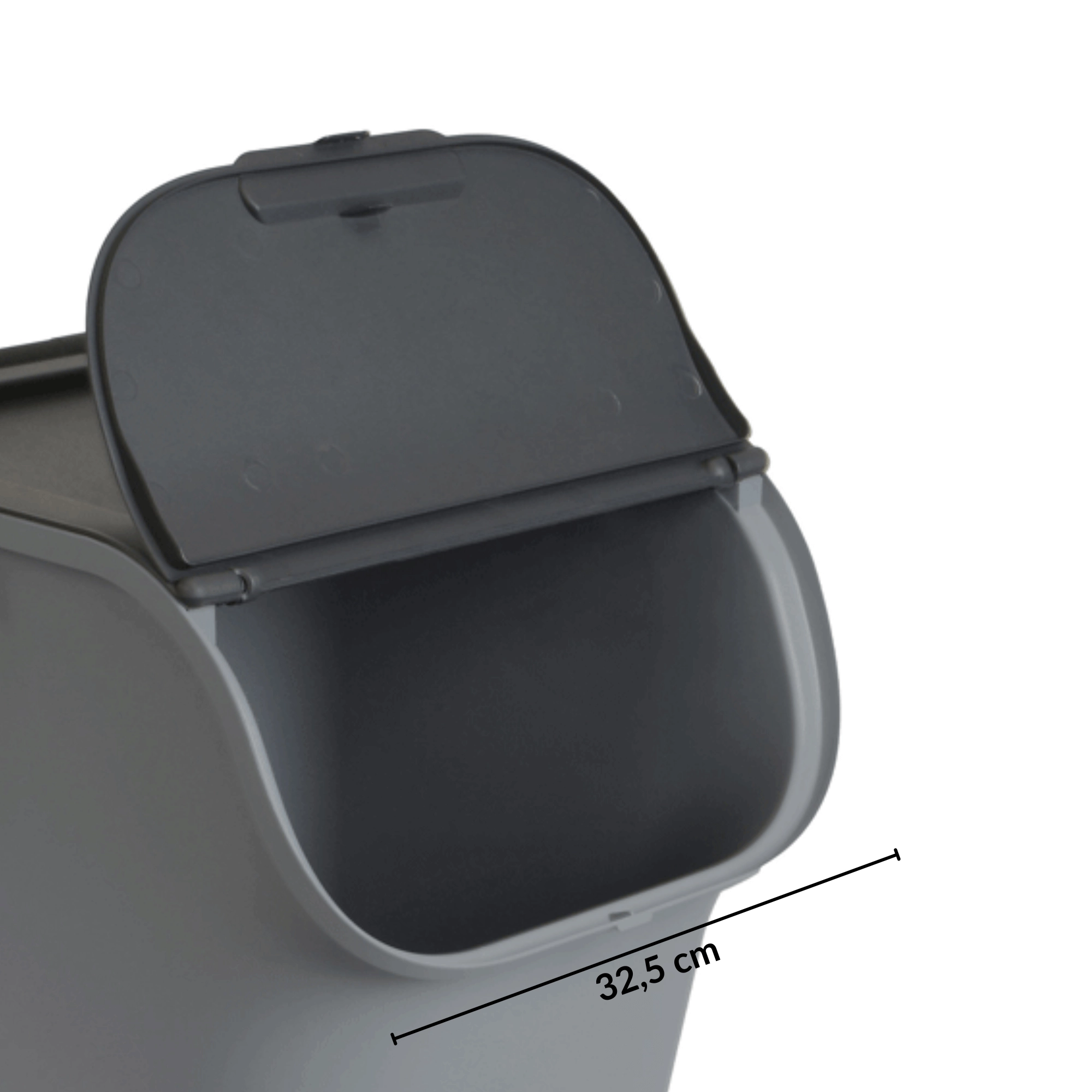 Maximaliseer de ruimte en vereenvoudig het scheiden. De rechthoekige vorm maakt het mogelijk de bakken naast elkaar en op elkaar te plaatsen, zodat u zelfs in een kleinere keuken of onder de gootsteen een overzichtelijk scheidingsstation creëert. De brede opening in het deksel versnelt het inwerpen zonder het deksel te hoeven verwijderen, terwijl de geïntegreerde onderste greep het dragen en legen vergemakkelijkt.