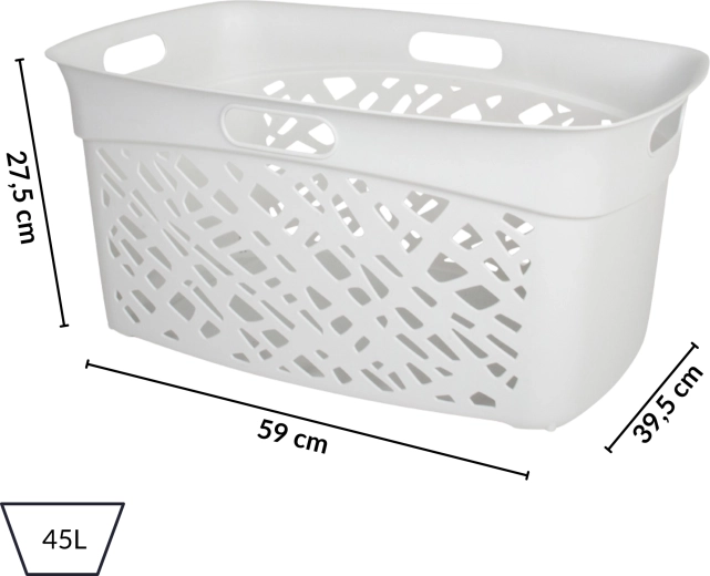 De wasmand ALMERIA 45 l is een stijlvolle en functionele oplossing voor dagelijks sorteren en dragen van was. Asymmetrische perforatie zorgt voor luchtcirculatie die vocht en geuren beperkt, terwijl de strakke lijnen passen in zowel moderne als klassieke interieurs.