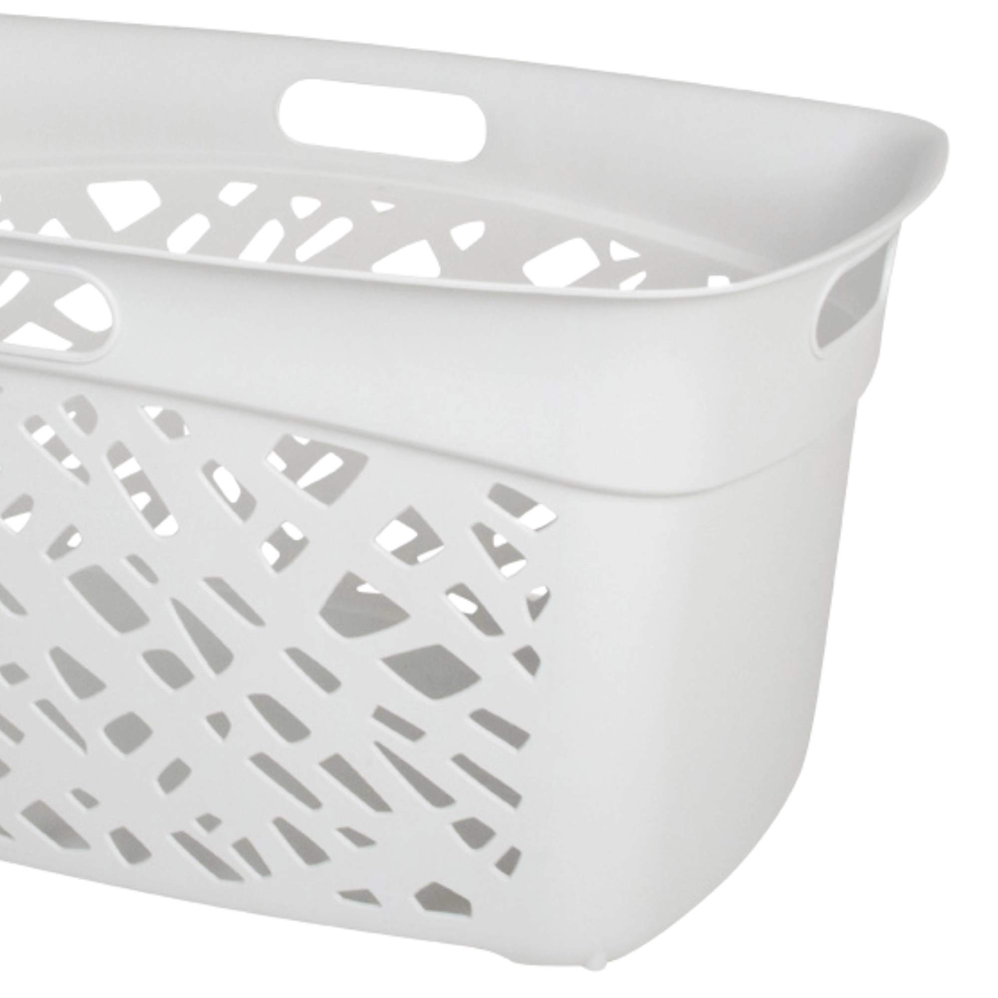 Vier geïntegreerde grepen en een verstevigde rand zorgen voor comfortabel dragen, zelfs wanneer de mand vol is. Het lage gewicht maakt dagelijks hanteren eenvoudig.