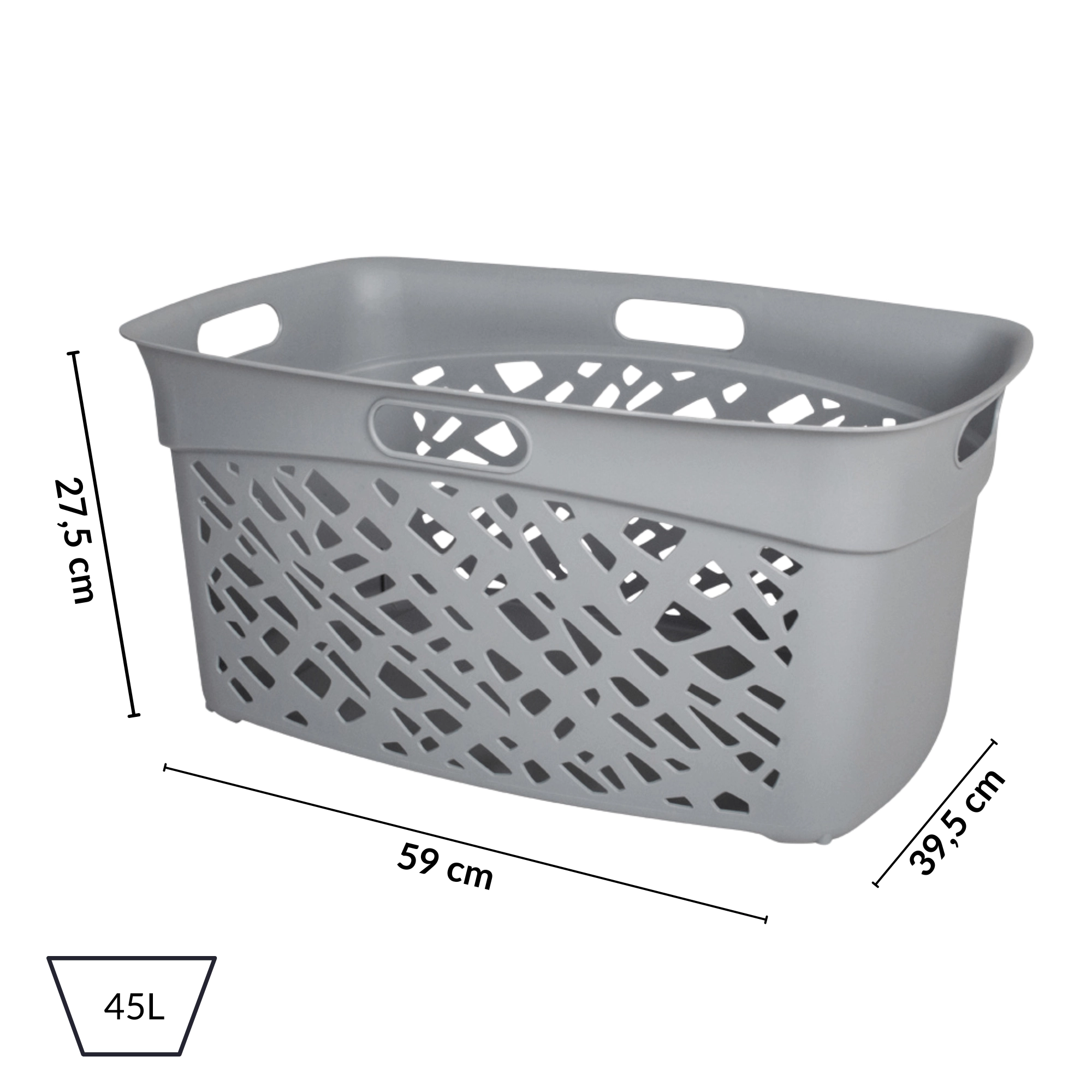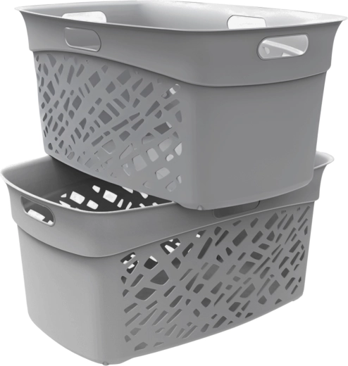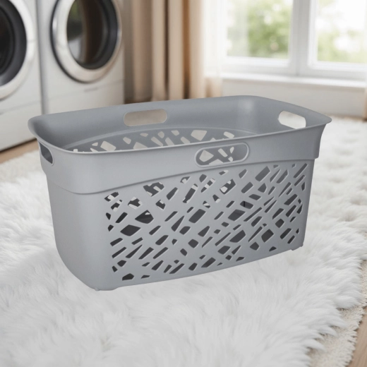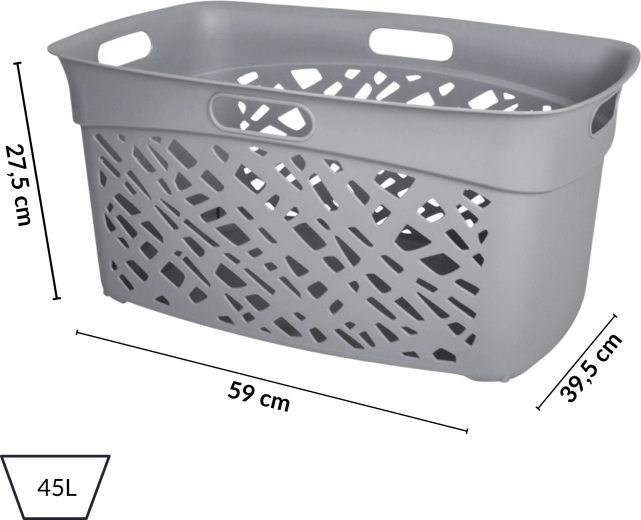 De ALMERIA wasmand combineert een asymmetrisch patroon met grote ventilatieopeningen voor een betere luchtcirculatie en het beperken van vocht en geurtjes. De elegante grijze afwerking past in elk interieur en benadrukt de strakke, moderne stijl van het huishouden.