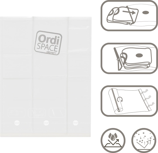 Zorg voor orde in huis en op reis. De oprolbare vacuümzak M 42 × 50 cm van stevig polyethyleen maakt het mogelijk om kleding snel en efficiënt te comprimeren zonder stofzuiger. Plaats de kleding, sluit af en rol op – de lucht wordt eruit gedrukt en jij wint extra ruimte.