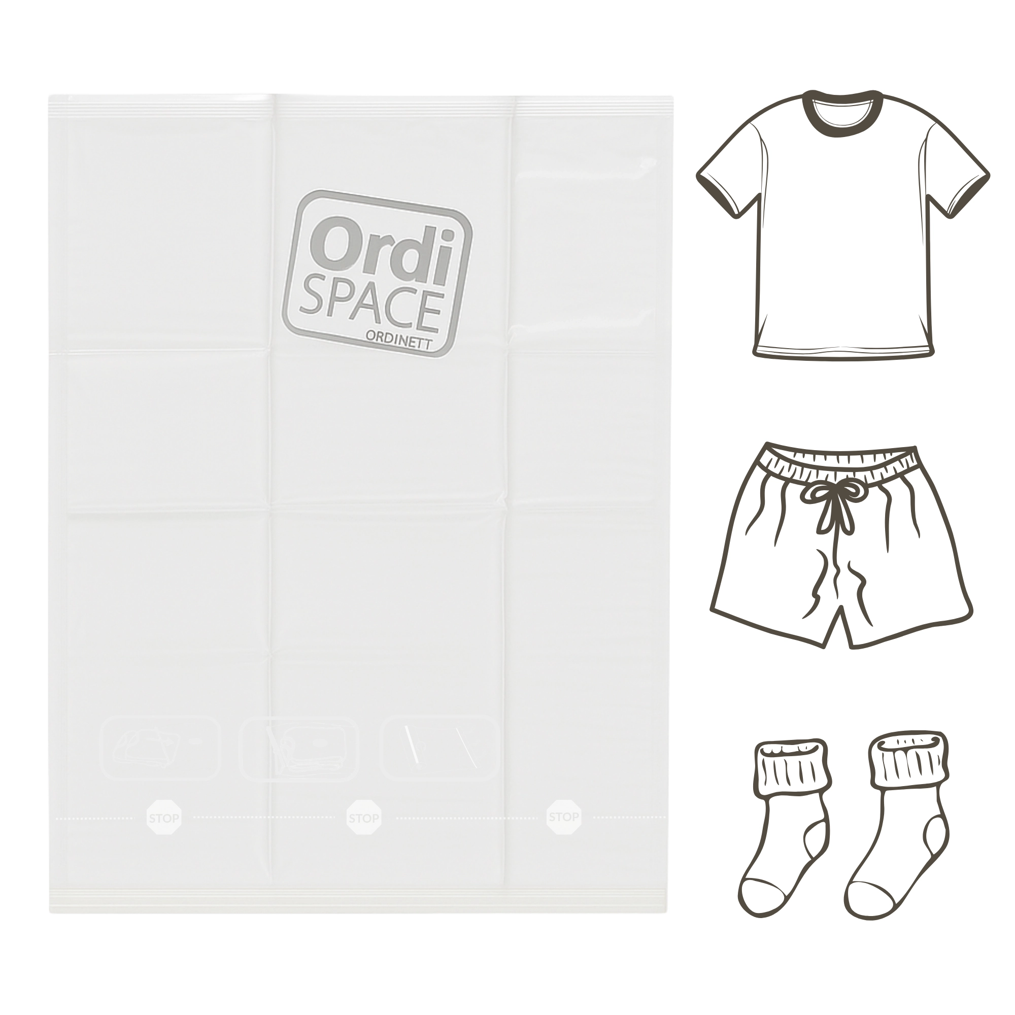 - Ruimtebesparing tot 75%: efficiënte compressie voor reizen en thuisopslag