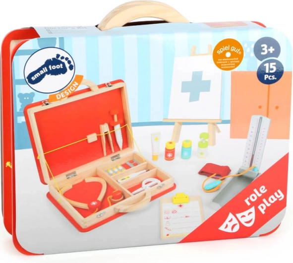 De koffer heeft elastische bandjes en gescheiden vakken die alle accessoires op hun plaats houden. Illustraties met dokterssymbolen zorgen voor overzicht en maken het spel begrijpelijk, ook voor jongere kinderen. Het spel ontwikkelt fijne motoriek, communicatie en verhalende vaardigheden.