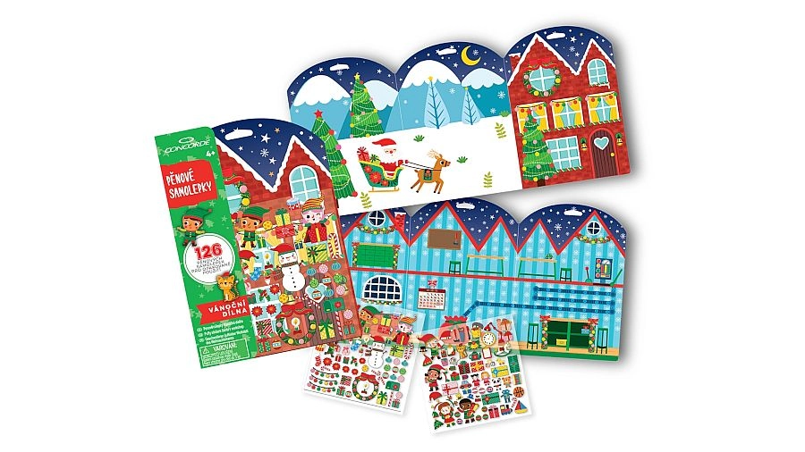 Ontdek de magie van Kerst met de creatieve set foamstickers van CONCORDE. De set bevat 126 herbruikbare stickers met het thema kerstwerkplaats en een dubbelzijdig uitklapbaar speelbord. De stickers hechten op gladde oppervlakken zonder lijm, zodat je ze vrij kunt verplaatsen en opnieuw plakken. Kinderen ontwikkelen tijdens het spelen hun fijne motoriek, fantasie en creativiteit.
