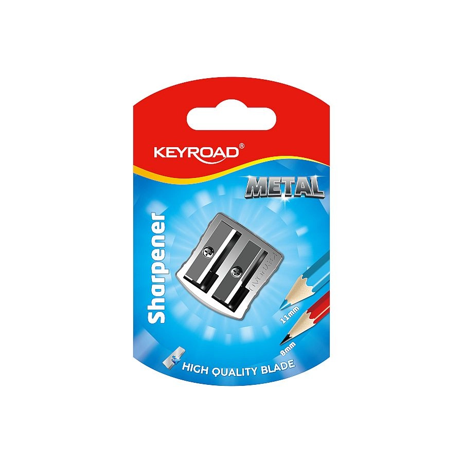 De Keyroad Metal Duo puntenslijper is een betrouwbare helper voor school, kantoor en thuis. Hij is gemaakt van duurzaam metaal en biedt twee slijpdiameters, zodat hij geschikt is voor zowel standaard- als dikkere potloden. Dankzij de ergonomische vorm en de geribbelde antislipafwerking ligt hij prettig in de hand en glijdt hij niet weg.
