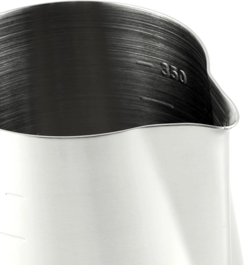 Praktische stalen kan voor het opschuimen van melk. Een comfortabele handgreep en schenktuit maken schenken eenvoudig. Praktische maatverdeling aan de binnenkant in stappen van 50 ml. De robuuste stalen constructie zorgt voor langdurig en probleemloos gebruik.