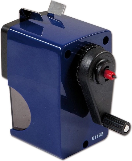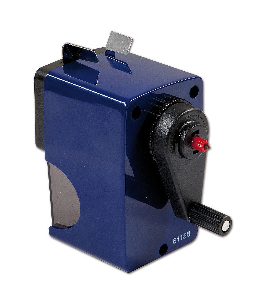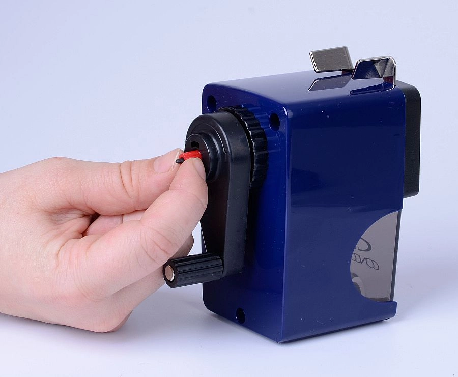 Praktische tafelpuntenslijper met zwengel voor dunne en JUMBO potloden met diameters van 7, 10 en 12 mm. Biedt automatische potlooddoorvoer tijdens het slijpen, eenvoudig losmaken van een afgebroken stift met behulp van een pin en de mogelijkheid tot vaste bevestiging op het werkblad voor stabiel en veilig gebruik.