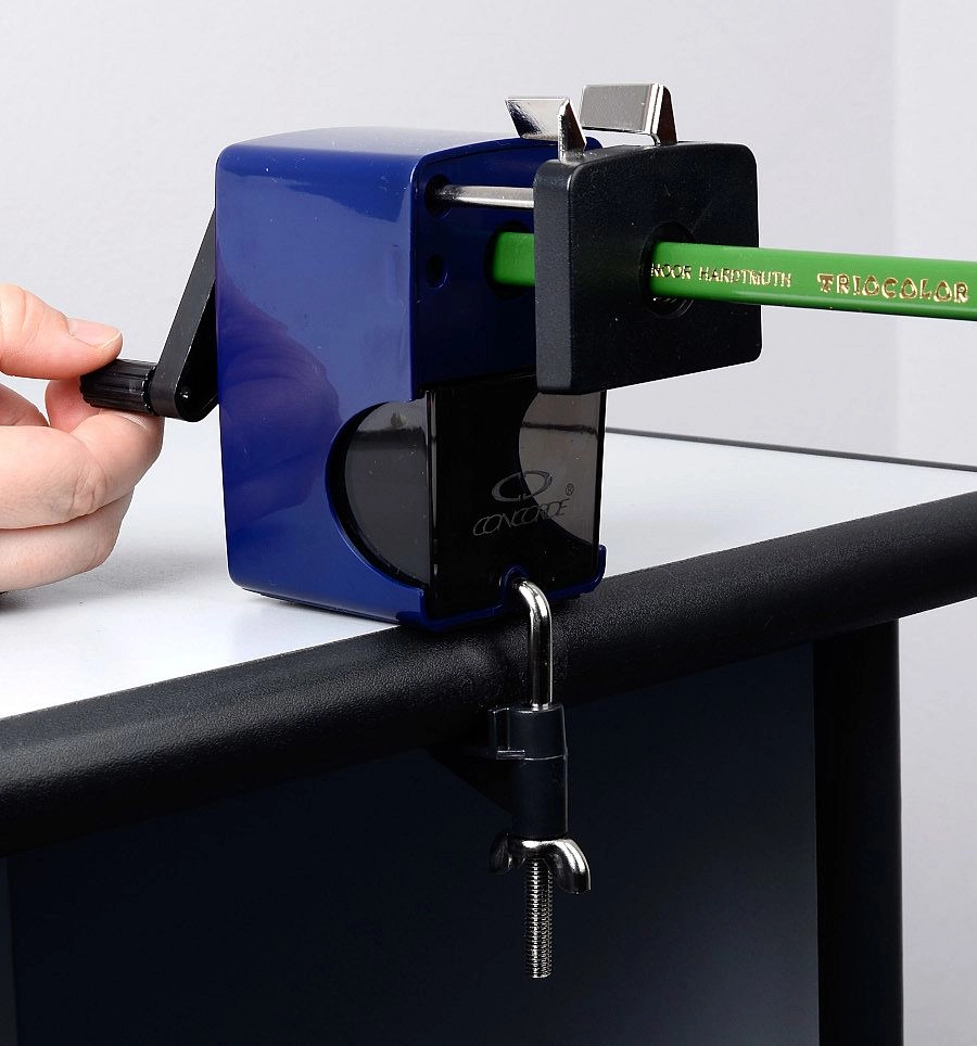 De CONCORDE Jumbo tafelpuntenslijper is een betrouwbare hulp op school, kantoor en in het atelier. Dankzij de robuuste mechanische overbrenging met zwengel zorgt hij voor nauwkeurig en soepel slijpen van gewone en dikke (JUMBO) potloden en kleurpotloden. De automatische potlooddoorvoer vergemakkelijkt het werk en zorgt voor consistente resultaten zonder onnodige inspanning.