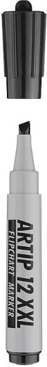 Professionele flipchartmarker met extra grote inktcapaciteit (+50%) en een afgeschuinde punt voor een variabele schrijfbreedte van 1–4 mm. Ideaal voor presentaties, trainingen en op kantoor – diep zwart, vloeiend schrijven en uitstekende leesbaarheid op flipchartpapier.