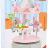 Een betoverende houten muziekdoos met een roze carrousel en drie paardjes brengt een magische sfeer in de kinderkamer. Na het opdraaien draaide de carrousel rond en klinkt de melodie “Where do I begin?”. Het nostalgische design, de fijne bloemmotieven en de kwalitatieve houten afwerking maken van deze muziekdoos een prachtige decoratie en een lief cadeau voor kinderen vanaf 3 jaar.