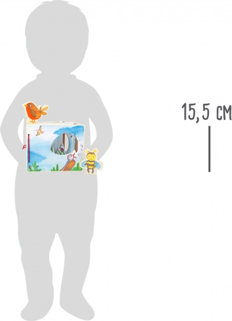 Ontdek de natuur met dit houten prentenboek voor de allerkleinsten. Een vrolijk bijtje en vogeltje begeleiden kinderen op elke pagina en stimuleren fantasie, fijne motoriek en de eerste kennismaking met flora en fauna. De figuurtjes kunnen voor veilig opbergen met klittenband aan de achterkant van het boek worden vastgemaakt. Gemaakt van 100% FSC-gecertificeerd hout.