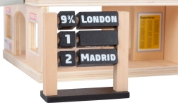 Ontdek een realistisch treinstation dat fantasie, rollenspel en fijne motoriek stimuleert. De robuuste constructie van gecertificeerd FSC-hout en doordachte details zoals de kaartjesautomaat, vertrekborden en winkeltje zorgen voor uren speelplezier. Het open dak geeft toegang tot alle speelzones en maakt samen spelen met meerdere kinderen makkelijker.