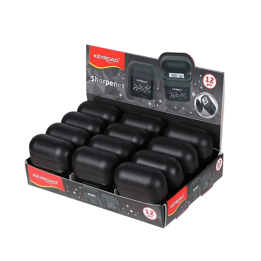 De Keyroad AirDuo puntenslijper is een betrouwbare hulp voor school, kantoor en thuis. De twee verschillende diameters (8 mm en 11 mm) zijn geschikt voor klassieke en dikkere kleur- en grafietpotloden. Het afsluitbare deksel en het geïntegreerde opvangreservoir minimaliseren rommel en maken onderhoud eenvoudig.