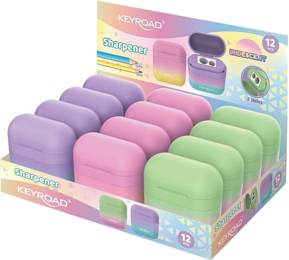 De stijlvolle Keyroad AirDuo puntenslijper in zachte pasteltinten is een uitstekende keuze voor school, kantoor en thuis. Biedt zuiver en precies slijpen van gewone potloden en dikkere kleurpotloden dankzij twee openingdiameters. Dankzij het afsluitbare deksel en het geïntegreerde reservoir blijft uw werkplek netjes.