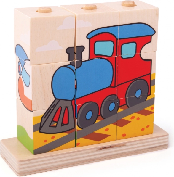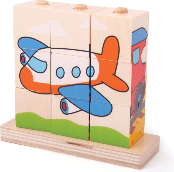 Houten puzzel Bigjigs Baby Vervoersmiddelen is het ideale speelgoed voor het ontwikkelen van motorische vaardigheden en hand-oog coördinatie bij kinderen. Bevat 10 stukken houten blokken met vier vervoersscènes: trein, auto, tractor en vliegtuig.