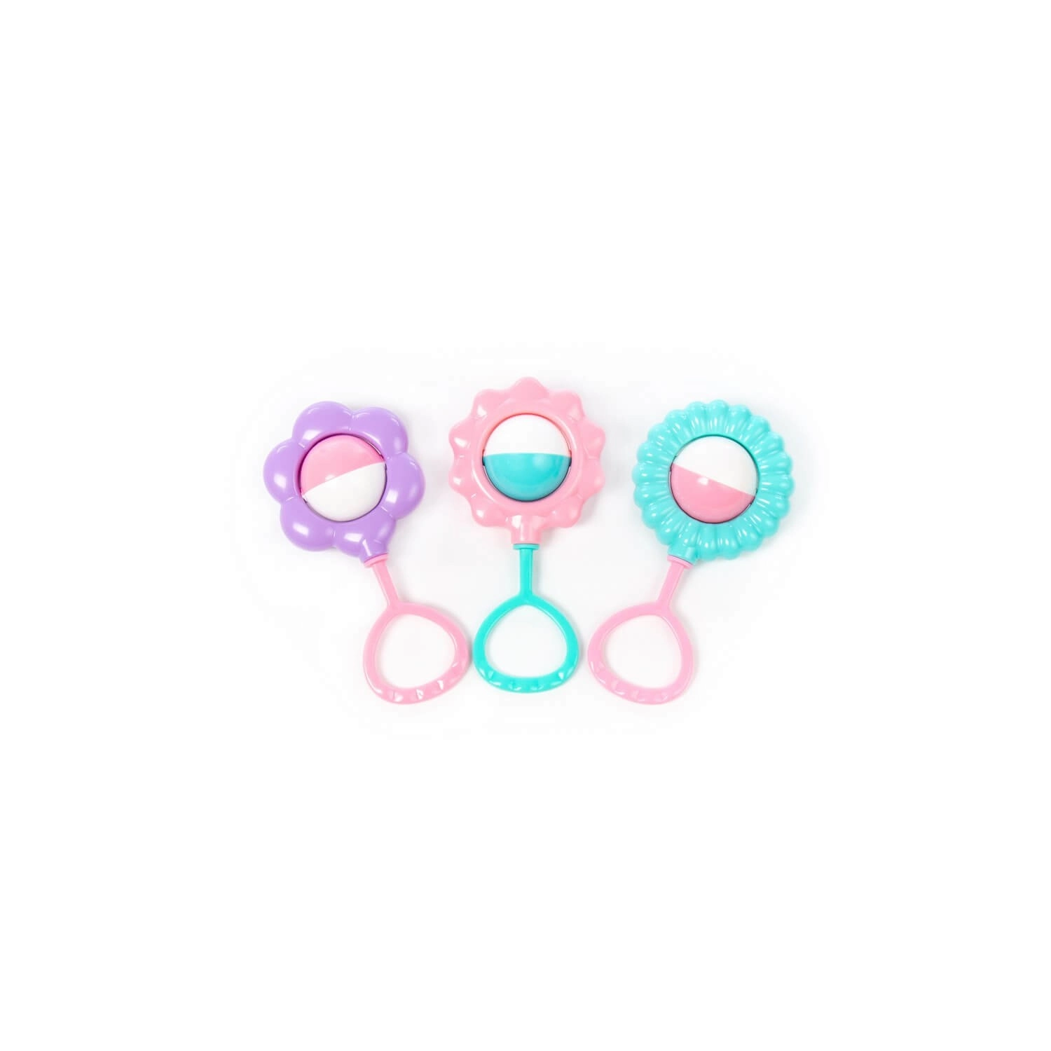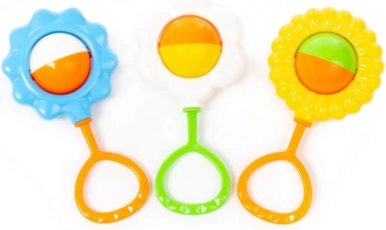 Ontdek samen met je baby een wereld van geluiden en kleuren met rammelaars die ontworpen zijn voor de eerste zintuiglijke ervaringen. Elke rammelaar heeft een draaibaar tweekleurig centraal schijfje dat bij beweging een aangenaam geluid maakt en het kind motiveert om te grijpen en te schudden. Gladde, afgeronde randen en een lichte kunststofconstructie zorgen voor veilig en comfortabel gebruik.