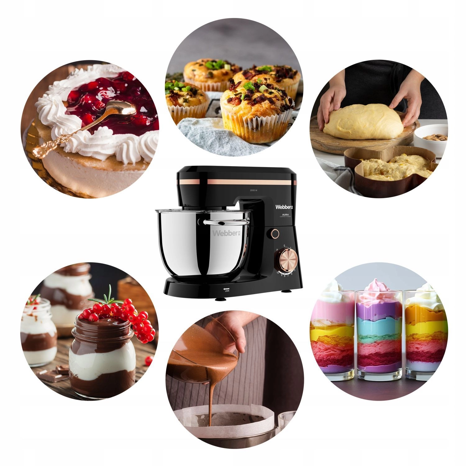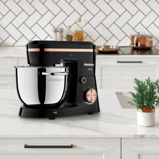 WEBBER Aura is een betrouwbare hulp voor dagelijks koken en veeleisend bakken. De krachtige 2000 W motor en de nauwkeurige planetaire beweging zorgen voor een gelijkmatige vermenging van ingrediënten – van luchtige crèmes en eiwitschuim tot stevige gerezen deegsoorten voor brood, pizza of knoedels. De roestvrijstalen kom van 5,2 l (BPA-vrij) biedt voldoende ruimte, ook voor grotere gezinnen.