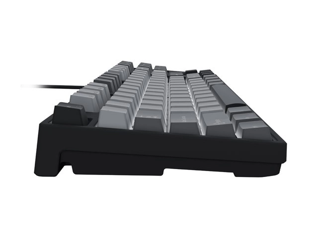PBT keycaps weerstaan slijtage en bieden een zekere grip. Gesmeerde stabilisatoren dempen het geluid van grote toetsen voor rustige en betrouwbare aanslagen.
