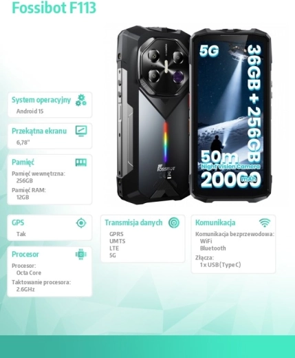 De robuuste slimme telefoon Fossibot F113 in een elegante grijze kleur biedt betrouwbare prestaties en een modern design voor dagelijks gebruik. Je zult zijn duurzame afwerking, helder display en lange batterijduur waarderen, waardoor het een uitstekende keuze is voor werk en ontspanning.