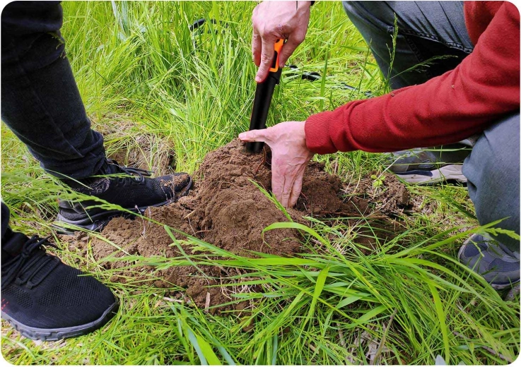 Scan de omgeving zowel loodrecht als rondom de sonde en lokaliseer vervolgens het doel exact met de punt van de detector. Sneller graven, minder ingrepen in het terrein.