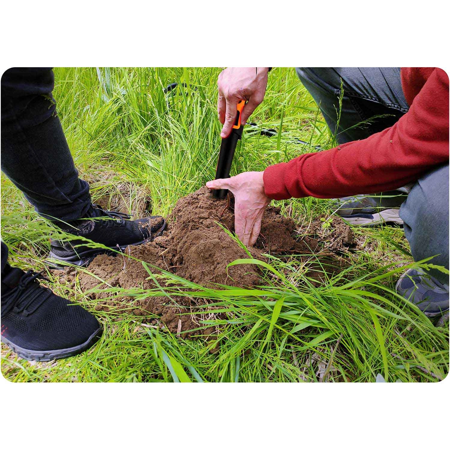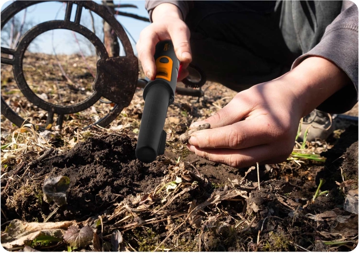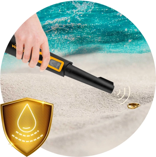 De detector is waterdicht volgens IPX8, zodat u ermee kunt werken in natte grond en in water. De ingebouwde LED-zaklamp maakt zoeken in het donker eenvoudiger en de rubberen greep biedt een zekere houvast in veeleisende omstandigheden. Voeding via een standaard 9V-batterij (niet inbegrepen) en automatische afstemming vereenvoudigen het gebruik thuis en in het veld.