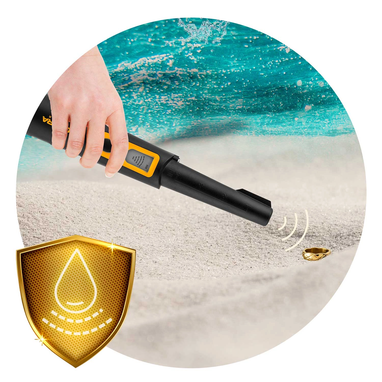 De hoge beschermingsklasse IPX8 maakt het mogelijk om doelen terug te vinden in natte grond, op het strand en onder het wateroppervlak. Ideaal voor het hele jaar door gebruik in veeleisende omstandigheden.