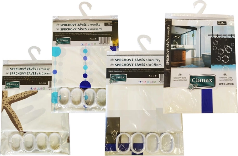 Praktisch douchegordijn van PEVA met afmetingen 180 × 180 cm voorkomt betrouwbaar het spatten van water buiten de douche. In de verpakking zitten 12 haken voor eenvoudige installatie en je kunt kiezen uit een mix van decoraties en kleuren (wit, blauw, groen, beige) die bij je badkamer passen.
