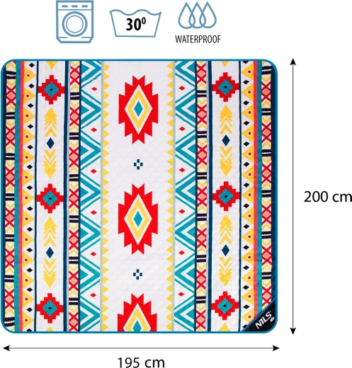 De afmetingen van 200 × 195 cm bieden voldoende plek om te zitten, eten en spelen. De stijlvolle Aztec-print geeft je picknick extra flair.