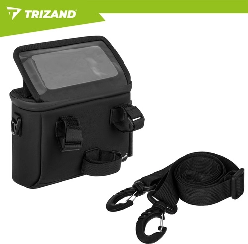 Bevestiging aan het stuur met sterke klittenbandstrips is snel en stabiel. De verstelbare hoek van de houder verhoogt het comfort tijdens navigatie. Dankzij de meerdere vakken heb je alles overzichtelijk geordend en bij de hand. Inclusief schouderriem voor eenvoudig dragen naast de fiets.