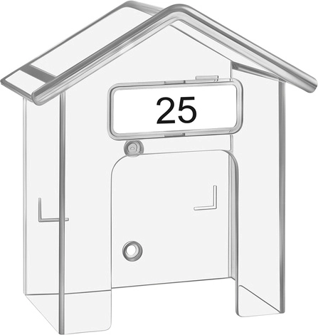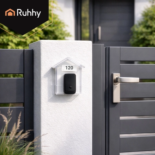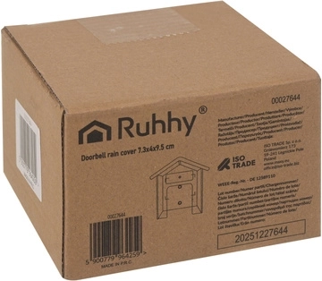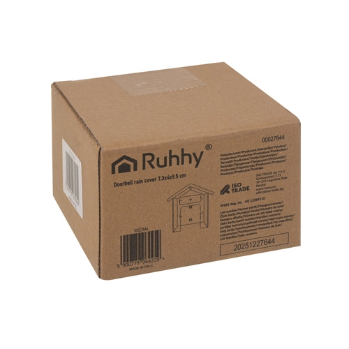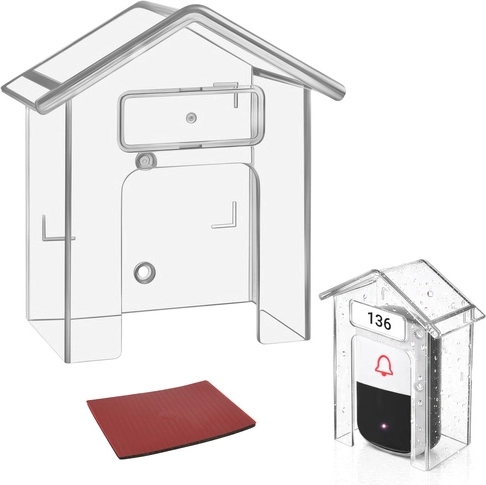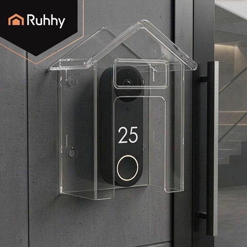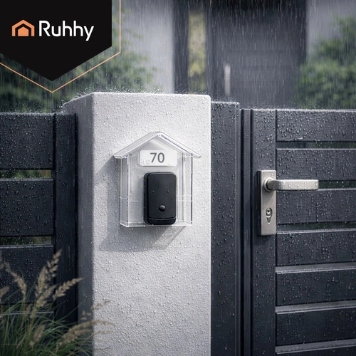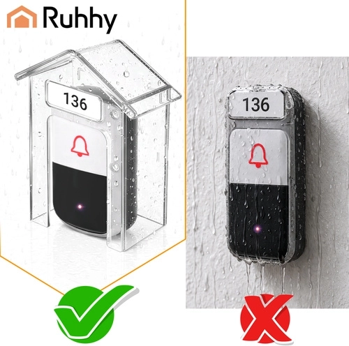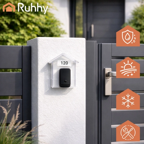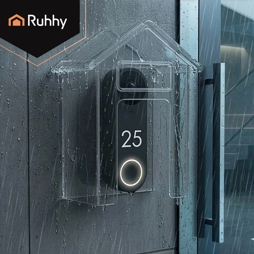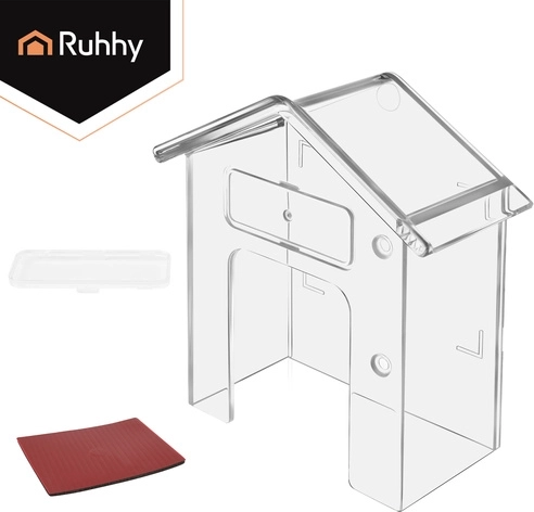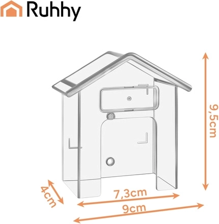 De praktische RUHHY-beschermkap is een slimme oplossing om de levensduur van uw deurbel te verlengen. De transparante kap in huisvorm schermt effectief af tegen regen, sneeuw en UV-straling, terwijl de volledige zichtbaarheid en toegang tot de knop behouden blijven. Dankzij de compacte afmetingen van 9,5 × 4,3 × 9,9 cm past hij bij de meeste draadloze en bedrade deurbellen.