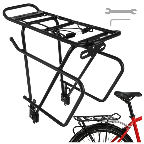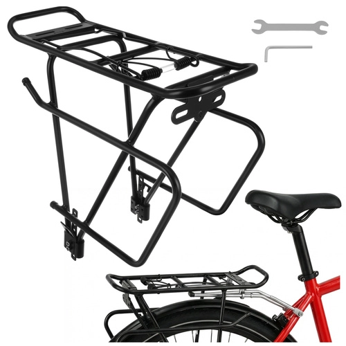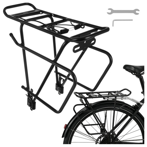 De aluminium drager met verstevigde stalen elementen kan tot 25 kg dragen, waardoor hij zonder extra belasting voor de fiets geschikt is voor boodschappen, tassen en uitrusting voor een trip.