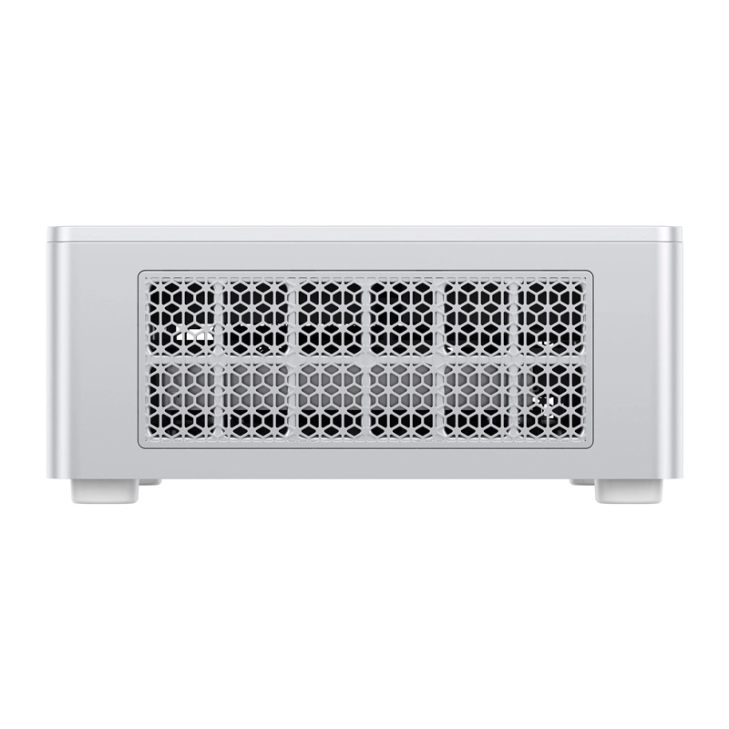 Dankzij HDMI 2.1, DP 1.4 en USB4 sluit je gelijktijdig tot drie 4K‑displays aan voor maximale productiviteit. USB4 (40 Gb/s) versnelt gegevensoverdracht en voedingslevering voor accessoires. Een stabiele verbinding wordt gegarandeerd door 2,5G RJ45 met linkaggregatie, Wi‑Fi 6E en Bluetooth 5.3. Geavanceerde koeling met een stille ventilator en heatpipe houdt de temperaturen laag en het geluid onder 35 dB.