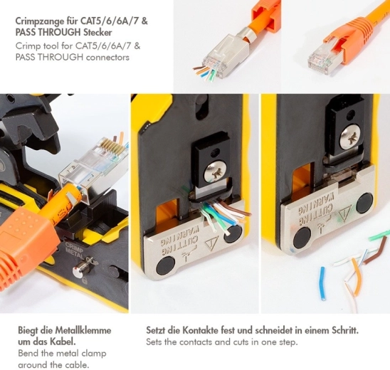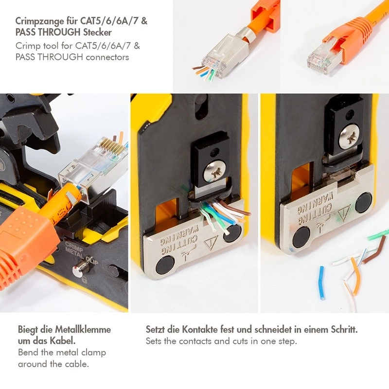 - Compatibiliteit: afgeschermde en niet-afgeschermde connectoren CAT5, CAT6, CAT6A, CAT7 (pass-through), RJ11/RJ12