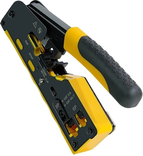 Professionele LOGILINK-krimptang voor netwerkconnectoren voor snel, nauwkeurig en betrouwbaar kabelwerk. Ideaal voor afgeschermde CAT6A (CAT7) pass-through connectoren met uitgaande clip en volledig compatibel met CAT5, CAT6, CAT6A en modulaire RJ11/RJ12. Combineert snijden, strippen en krimpen in één duurzaam en ergonomisch ontwerp.