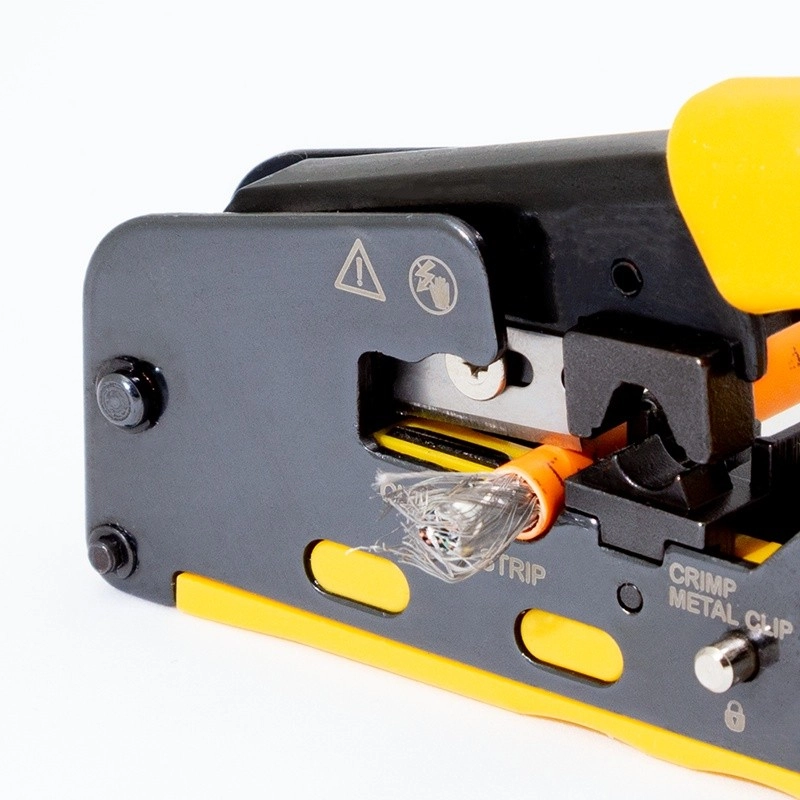 De ergonomische handgreep en doordachte functielay-out zorgen voor een comfortabele grip en snel, nauwkeurig werk. In één handeling voert u eenvoudig kabelsnijden, mantelstrippen en contactkrimpen uit, wat tijd en moeite bespaart.