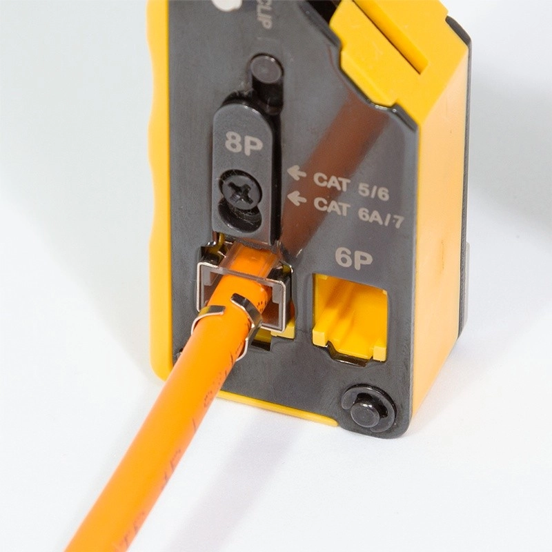 - CAT5, CAT6, CAT6A, CAT7 (pass-through), RJ11, RJ12