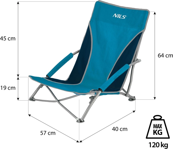 Geniet van comfort aan het water en op vakantie met de opvouwbare stoel van NILS Camp. Licht maar met een stabiel stalen frame, duurzame bekleding van Oxford 600D en een draagvermogen van 120 kg voor betrouwbaar zitten, waar je ook bent. Het lage profiel is ideaal voor op het strand, de met foam gevulde armleuningen verhogen het comfort en dankzij het opvouwen in de transporthoes neem je de stoel gemakkelijk mee.
