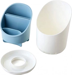 De bestekorganizer biedt drie hoofdvakken om vergelijkbare items te groeperen tijdens het drogen. Hij is uitgerust met een ondieper vak voor kleinere items zoals lepels en heeft een speciale opening voor messen en gelaagde vakken.