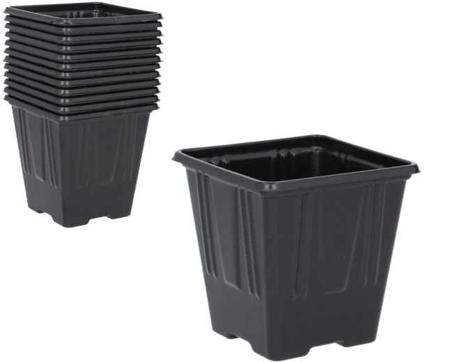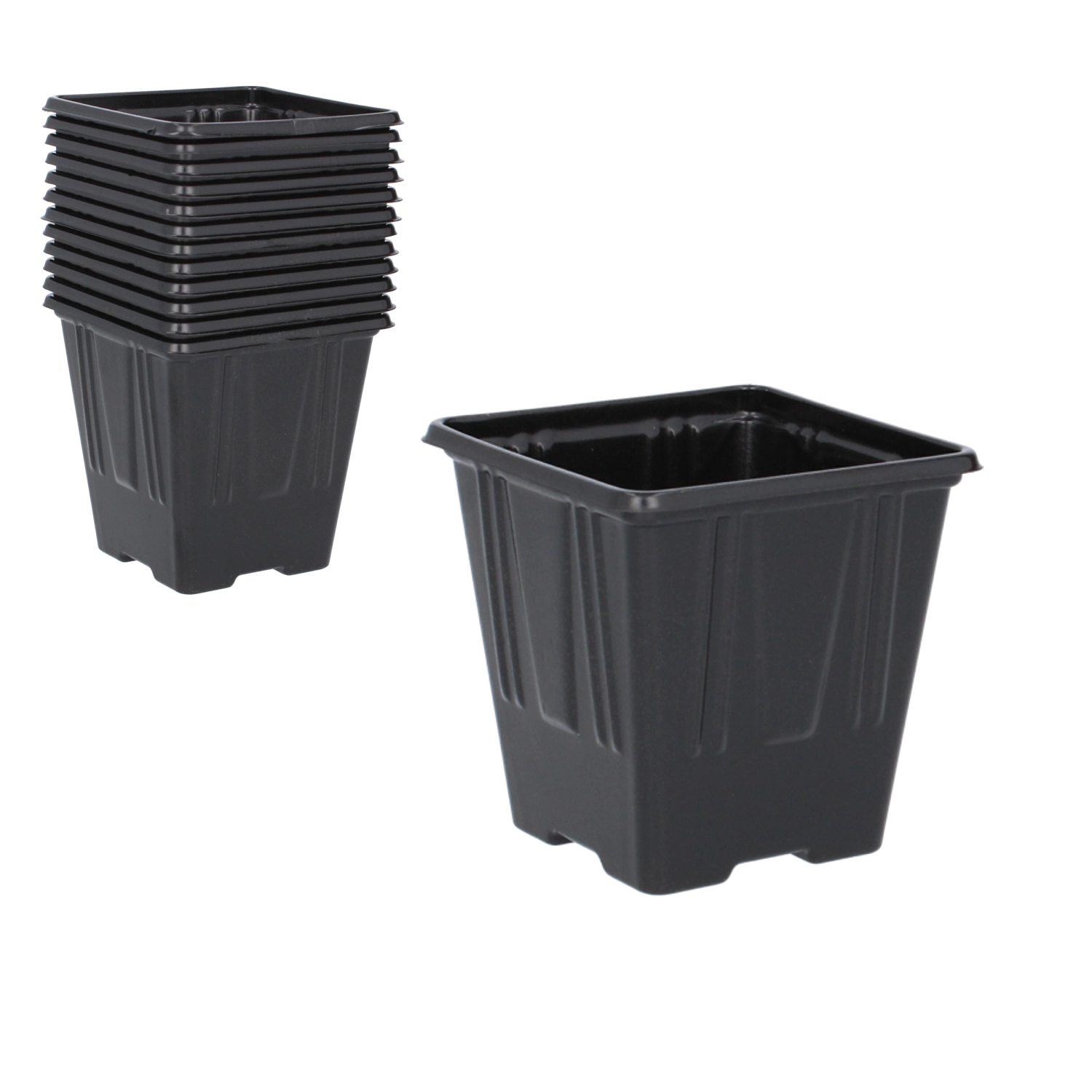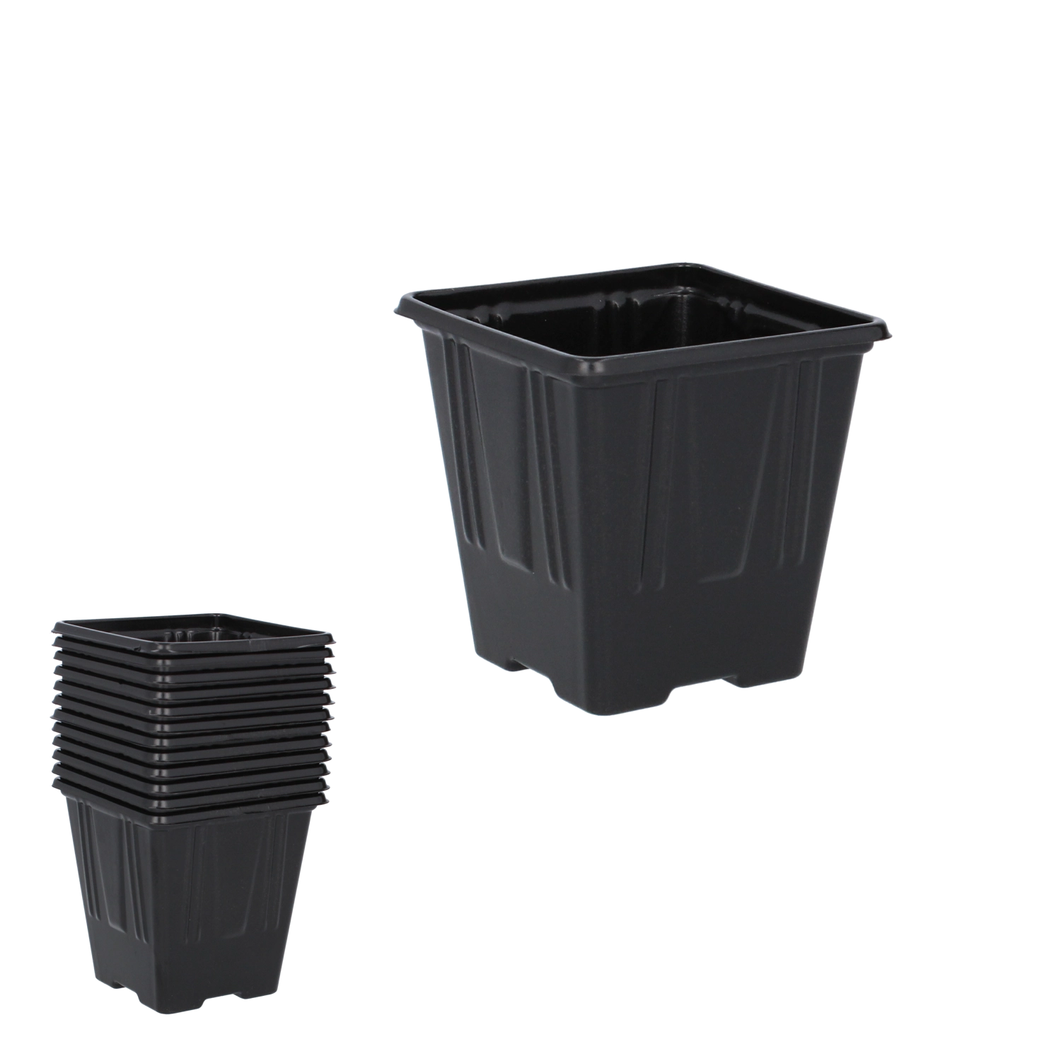 Begin met kweken als een professional. Deze vierkante bloempotten van hoogwaardig plastic zijn perfect voor tomaten, komkommers, courgettes en kruiden. Dankzij de stevige maar flexibele constructie werk je gemakkelijk met de planten en is verpotten vriendelijk voor de wortels.